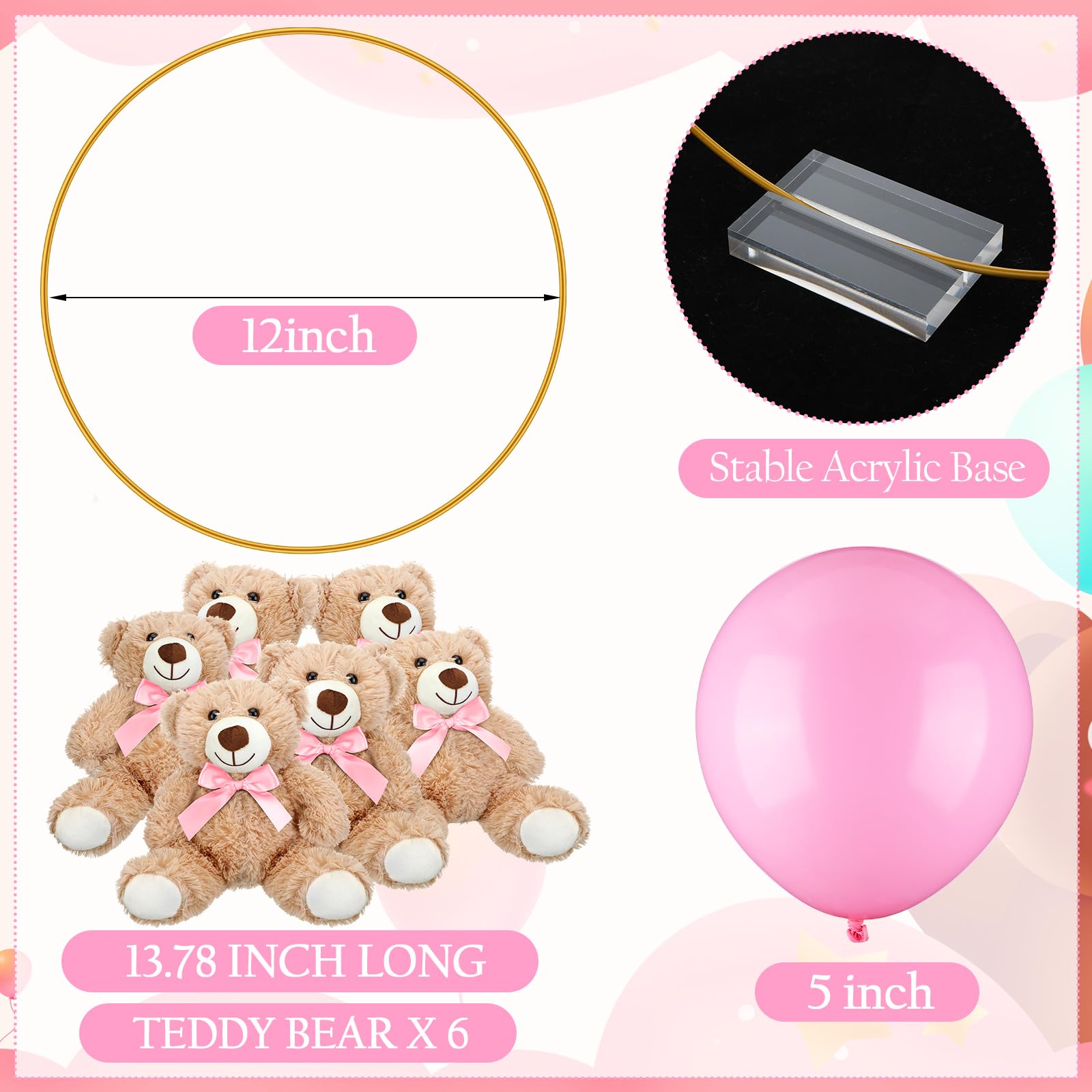 - Sufficient Quantity: the package contains 6 pieces of 12 inches diameter gold metal hoops for crafts with acrylic base, 6 stuffed bears, 100 balloons and 1 roll of wire, enough for 6 DIY elegant table centerpieces for home( Instructions included in the package