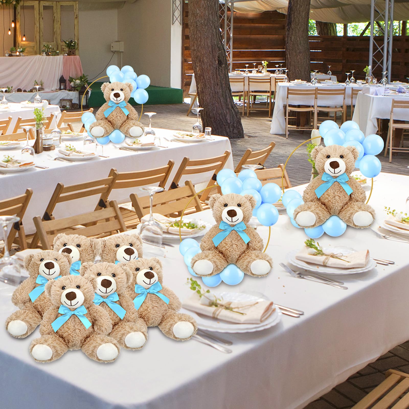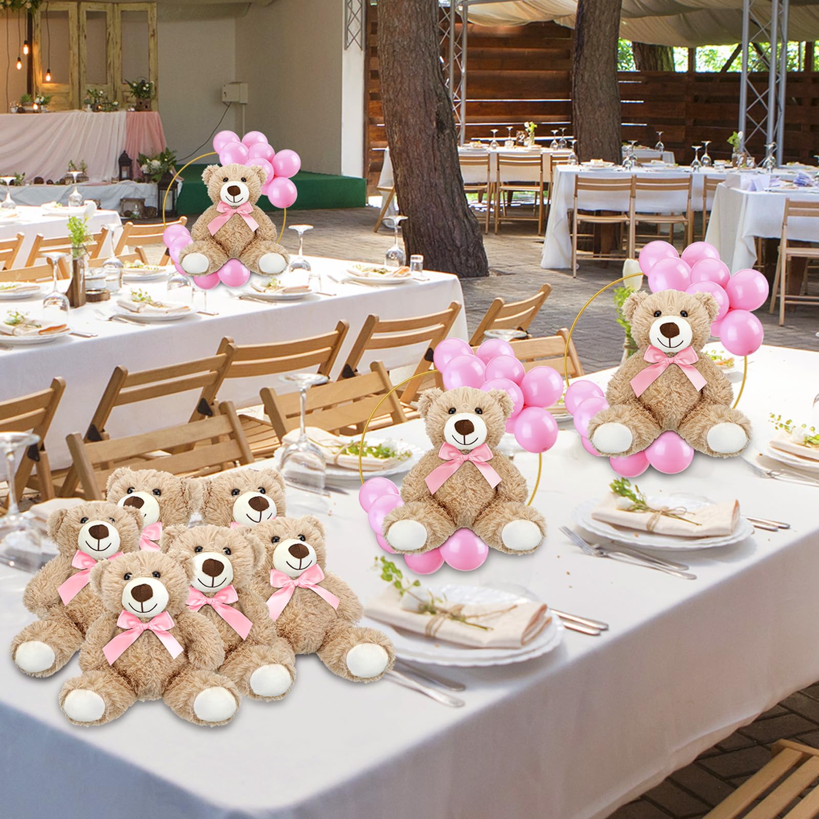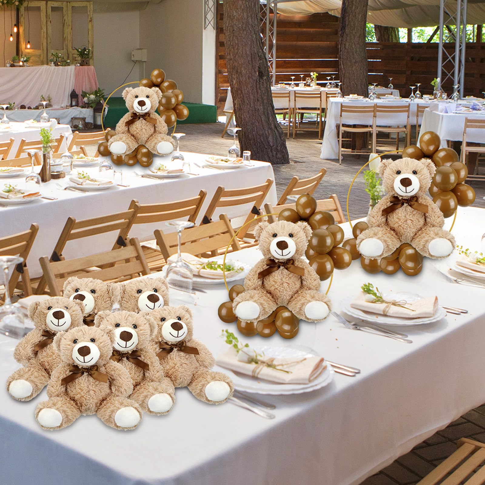 6 Sets Bear Baby Shower Table Centerpieces Bear Stuffed Animals 12 Inch Metal Floral Hoop with Stand Balloon for Wedding Baby Shower Birthday Flowers Table Decorations(Brown)