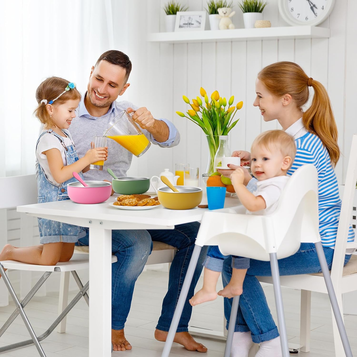 Versatile Set: This set of 8 stainless steel baby bowls comes in a variety of 8 vibrant colors and with 8 spoons. perfect for busy parents who want to add a touch of fun and organization to mealtimes.