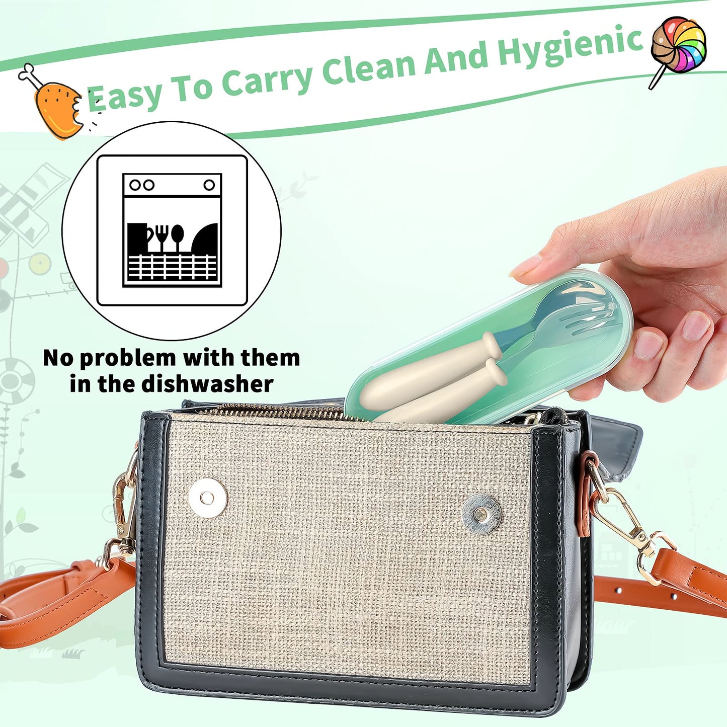- Cutlery travel case: come with 3 sets toddler utensils set, and they come with a nice carrying case for each pair! which can keep the tableware clean, and you can put it into your bag, so that your baby utensils will still stay neat, reducing chance to contact with dirt, They are the suitable size for preschoolers .... and easy to travel- picnics, camping etc.