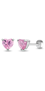 Our heart baby earrings with safety backs are delicate and striking, adding a touch of sparkle look to your little girl. These baby earrings have safety push backs for extra comfort and security. They are made of 925 sterling silver, for little girls with sensitive ears, and feature a tiny heart cubic zirconia stone. Kid's earrings with safety backs make great jewelry gifts for baptism, birth gifts, birthdays, and Christmas. Packaged neatly in a complimentary gift box.