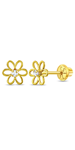 - Earring Size: 7mm (Clear) flower; 8mm Threaded earring post; recommended for children ages 1-7 years