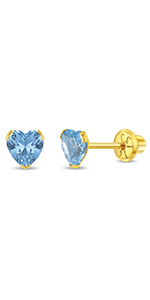 Simulated Aquamarine Birthstone Heart Earrings