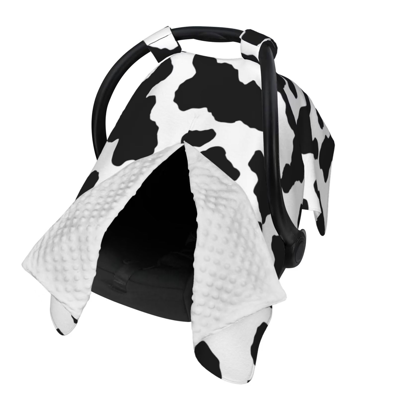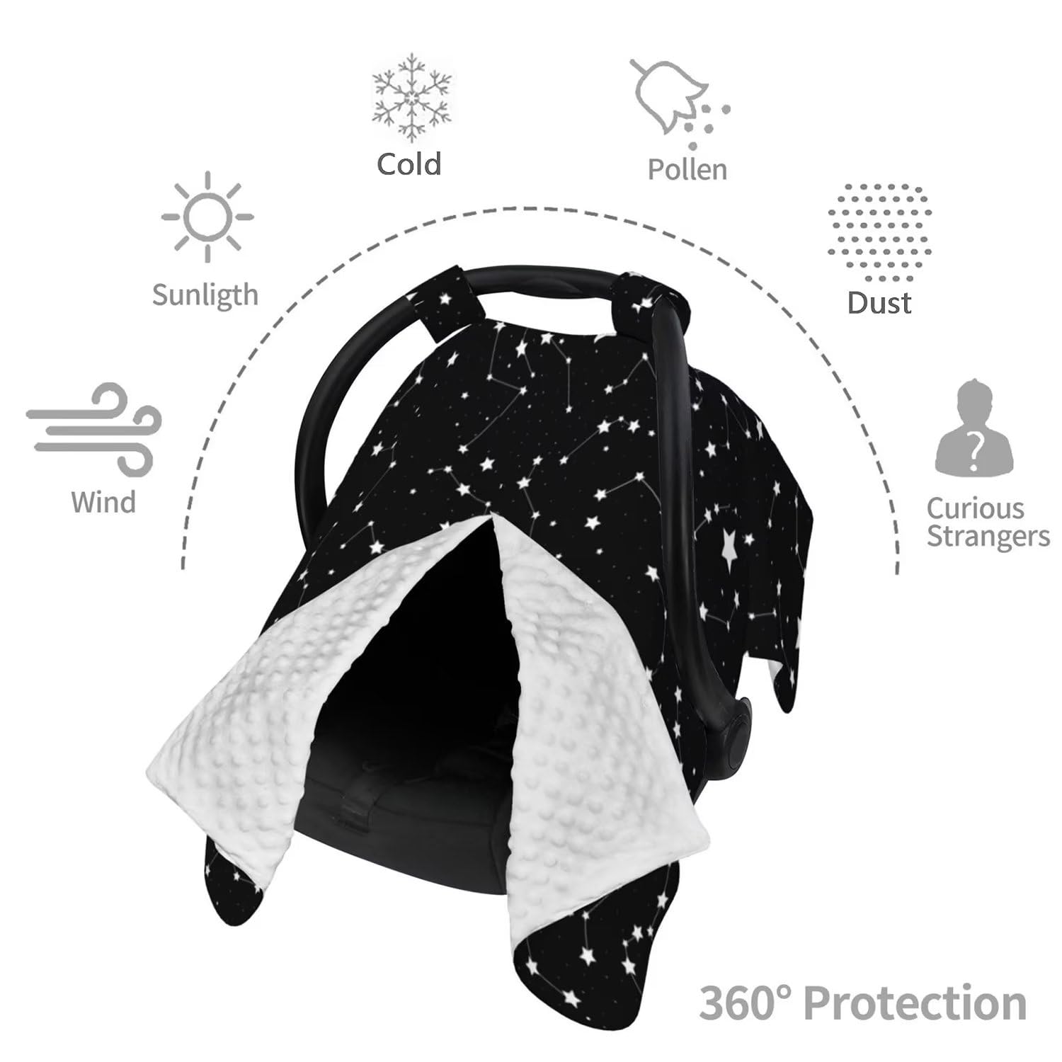9CH Car Seat Covers for Babies, Peekaboo Opening Minky Car Seat Cover for Baby Mom Nursing Breastfeeding Covers, Winter Minky Baby Carrier Cover for Girls Boys (Black Star)
