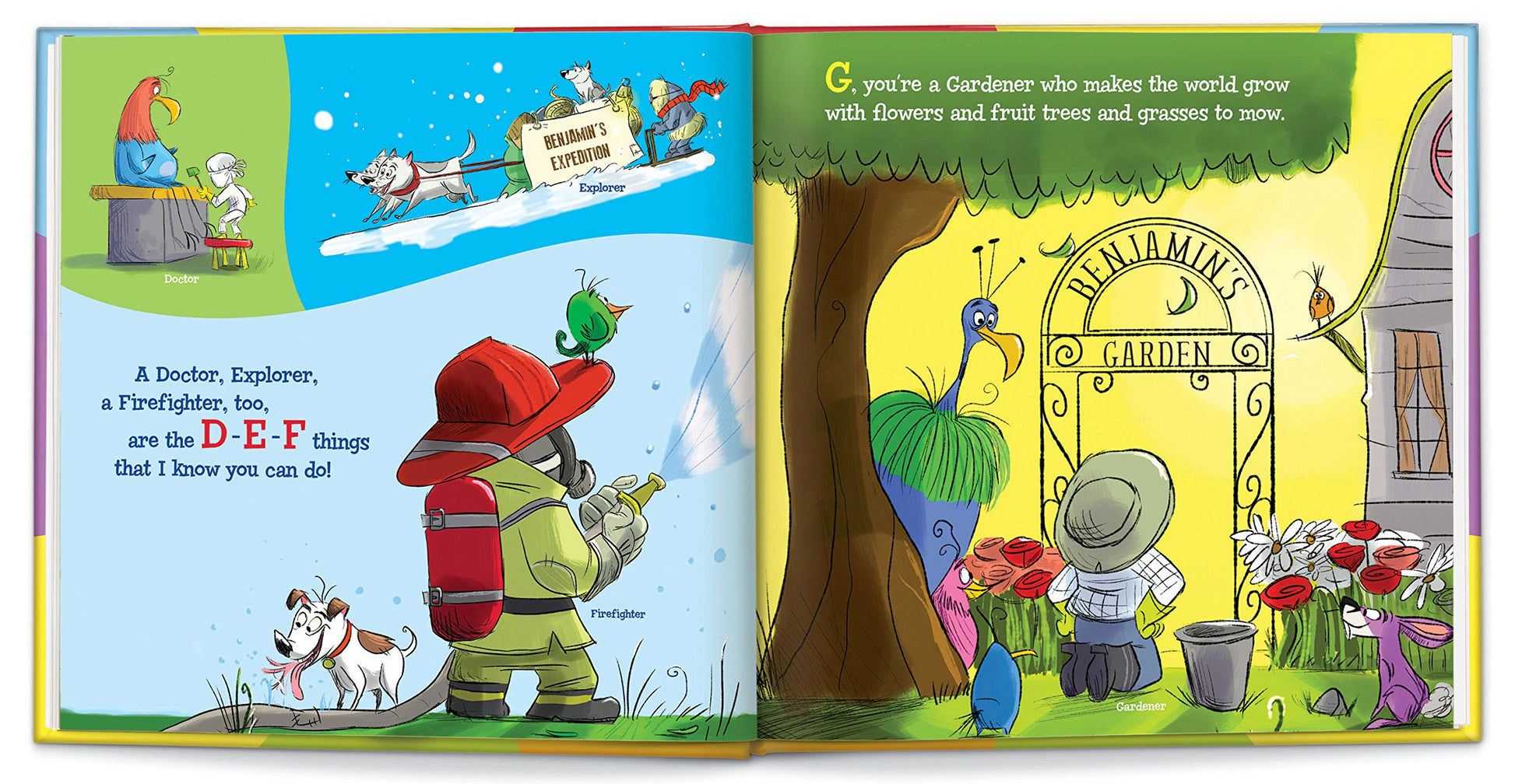 This alphabet story is uniquely customized for each child, with vibrant illustrations that introduce letters and a range of different careers.
