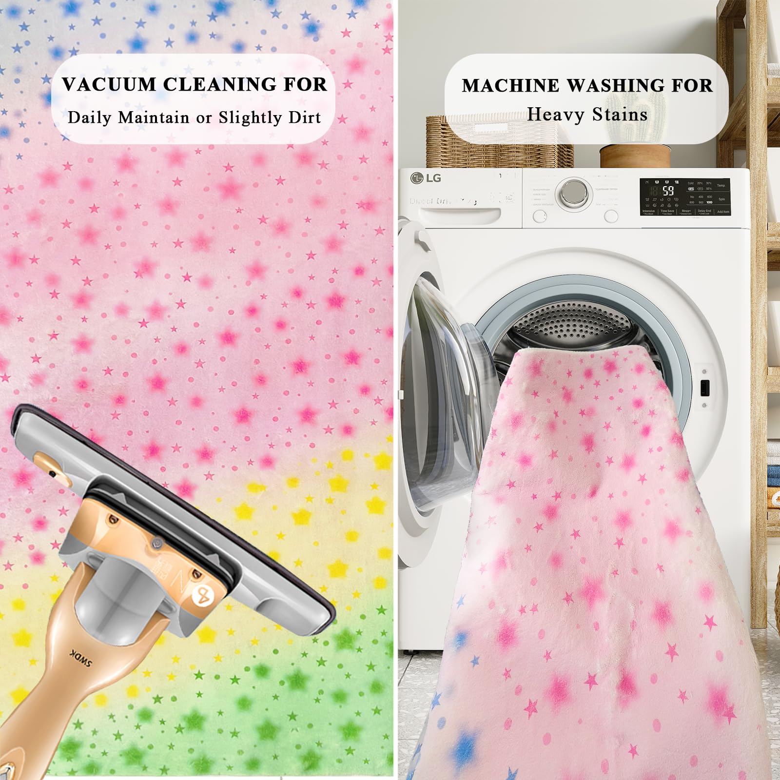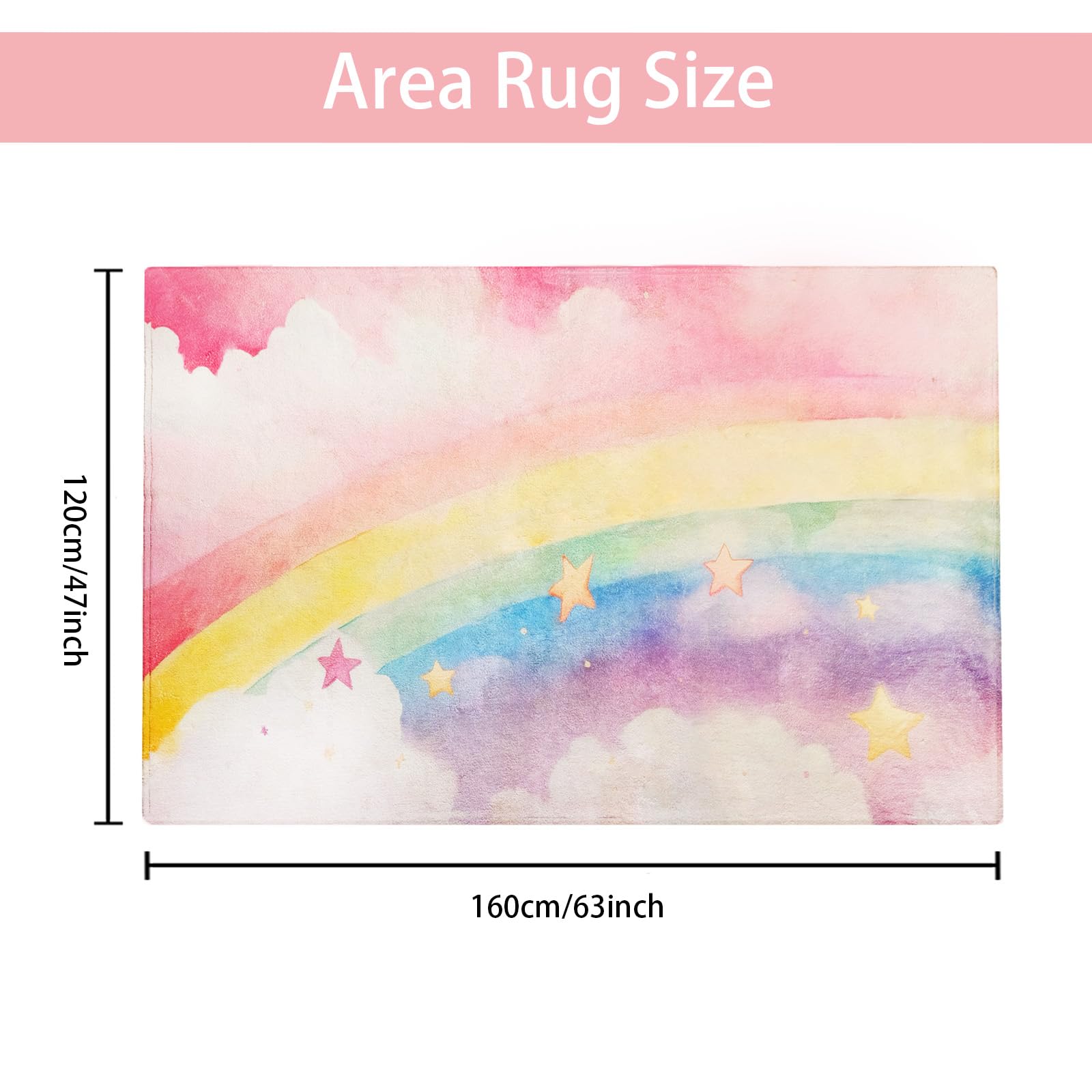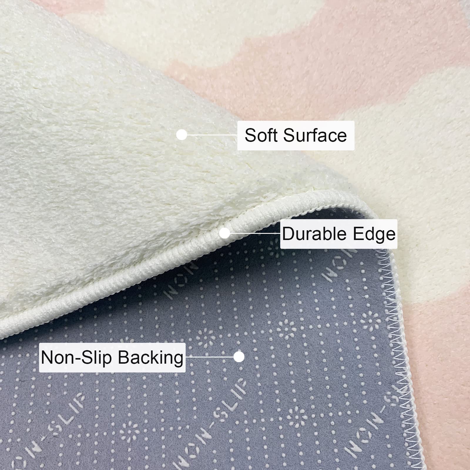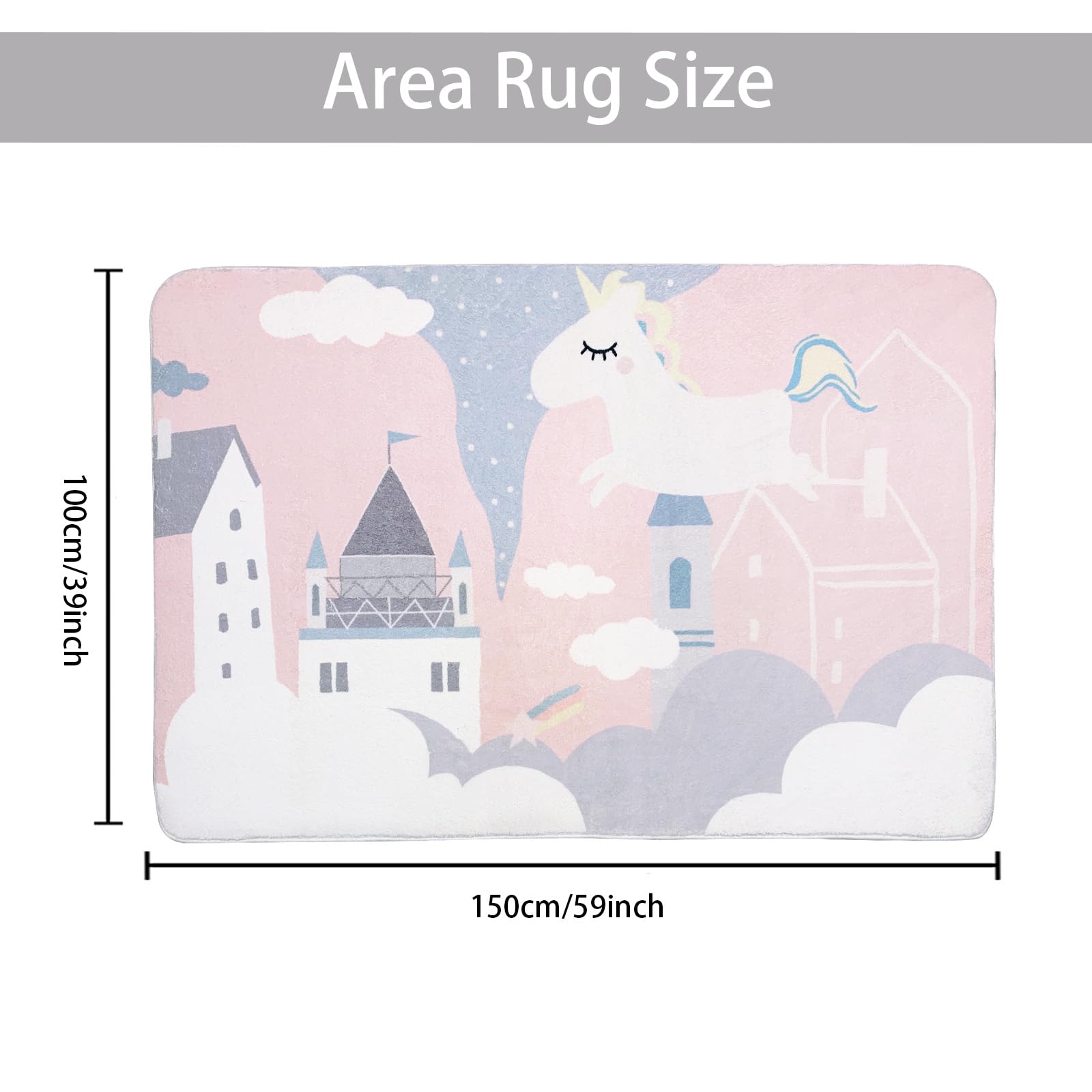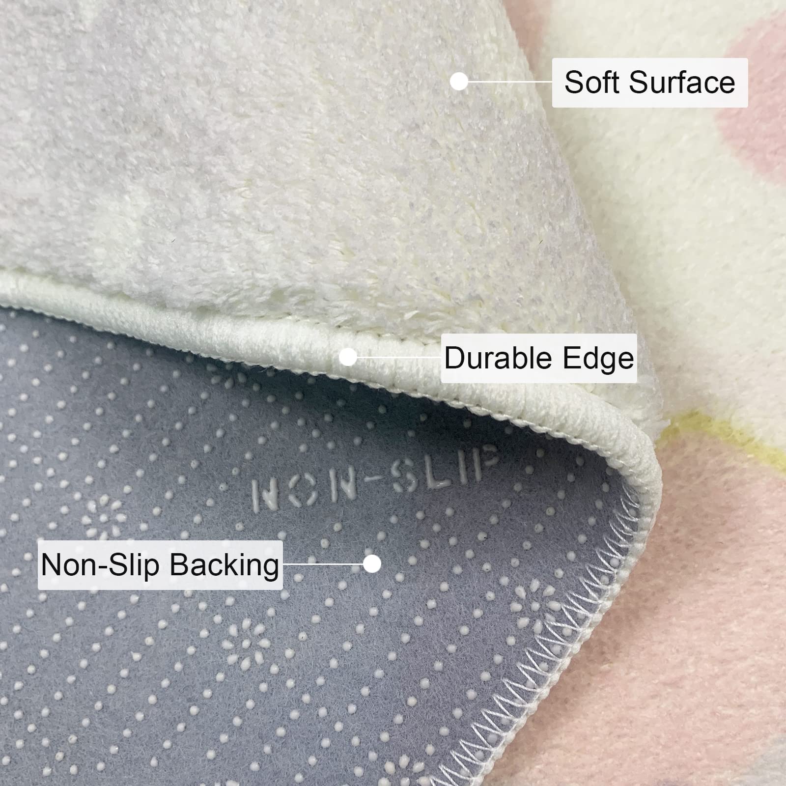- 【Cashmere-like Touch for Comfy Experience】 The surface of this cartoon rug is designed like cashmere. The soft fiber and dense fluff of this machine washable medium pile rug for bedroom decor will give you a soft touch and keep you and kids away from the cold floor, bringing a soft, warm and comfortable experience when standing on it, especially with bare feet.