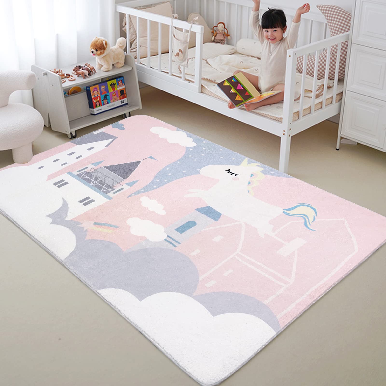 ABREEZE Kids Rug Play Mat Ultra Soft Rugs for Bedroom, 3.3'x5' Non Slip Cartoon Children Nursery Rug Area Rug Kids Carpet for Bedroom Decor Playroom Living Room