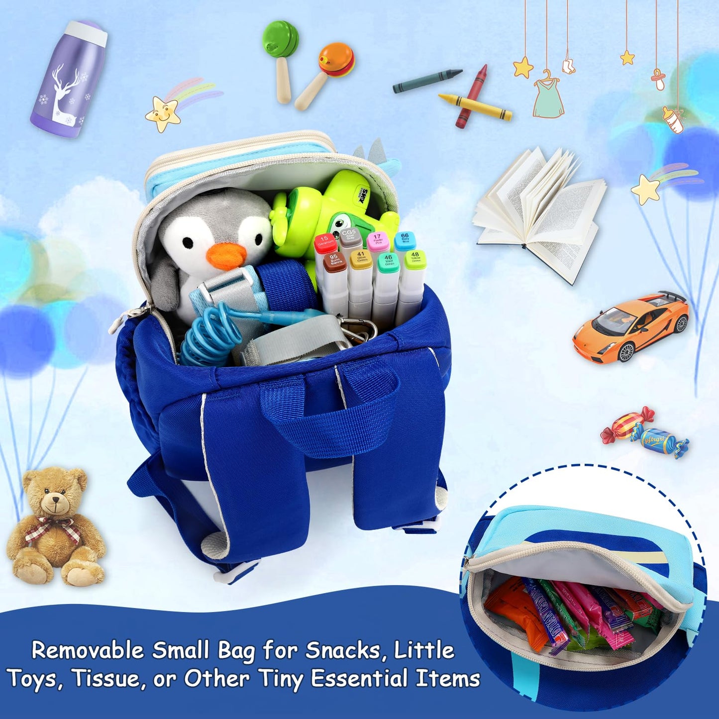 Accmor Toddler Leash Backpack with Anti Lost Wrist Link, Cute Dinosaur Bag Children Safety Walking Harness with Removable Little Pouch, Kids Travel Essential Mini Back Pack with Tether for Baby Boys