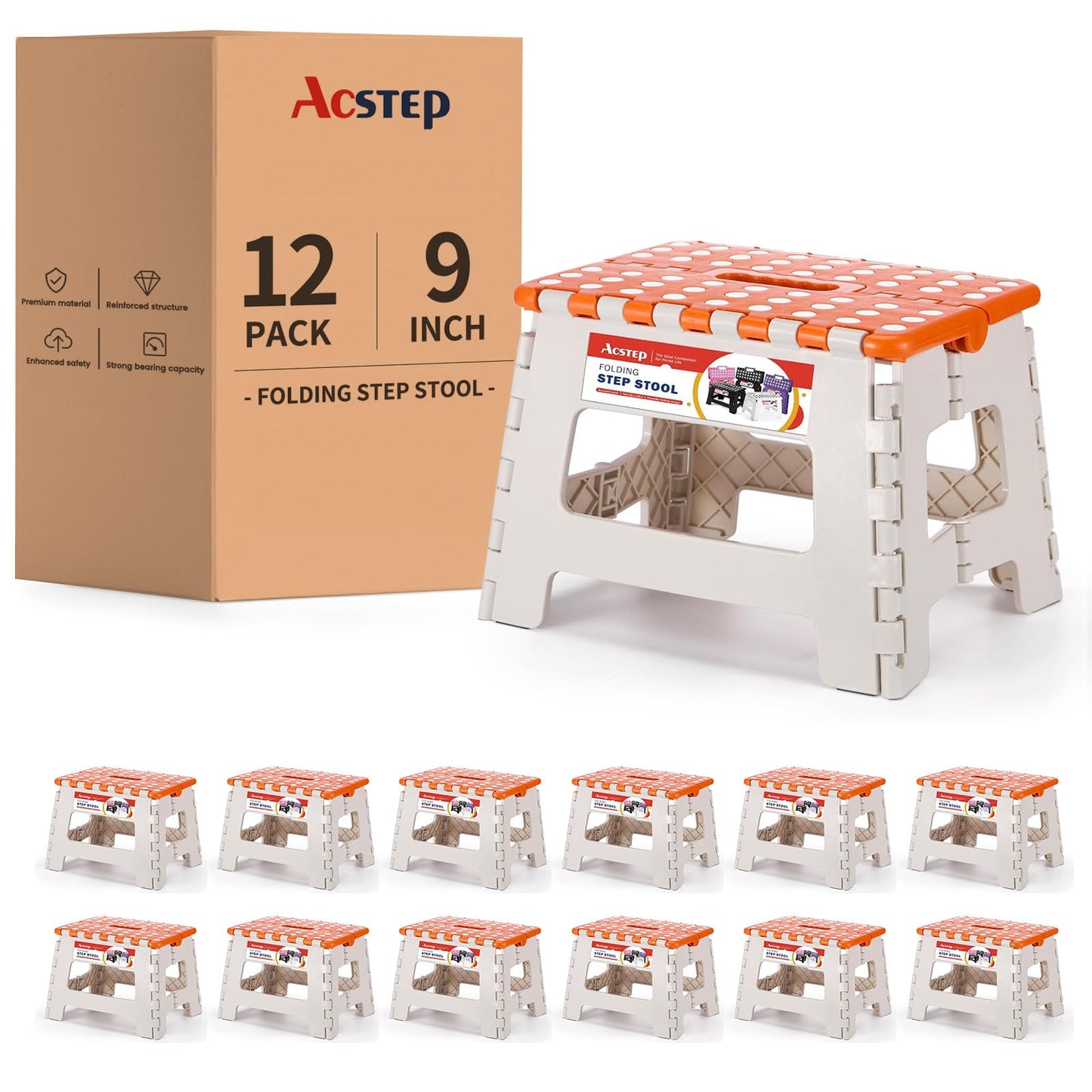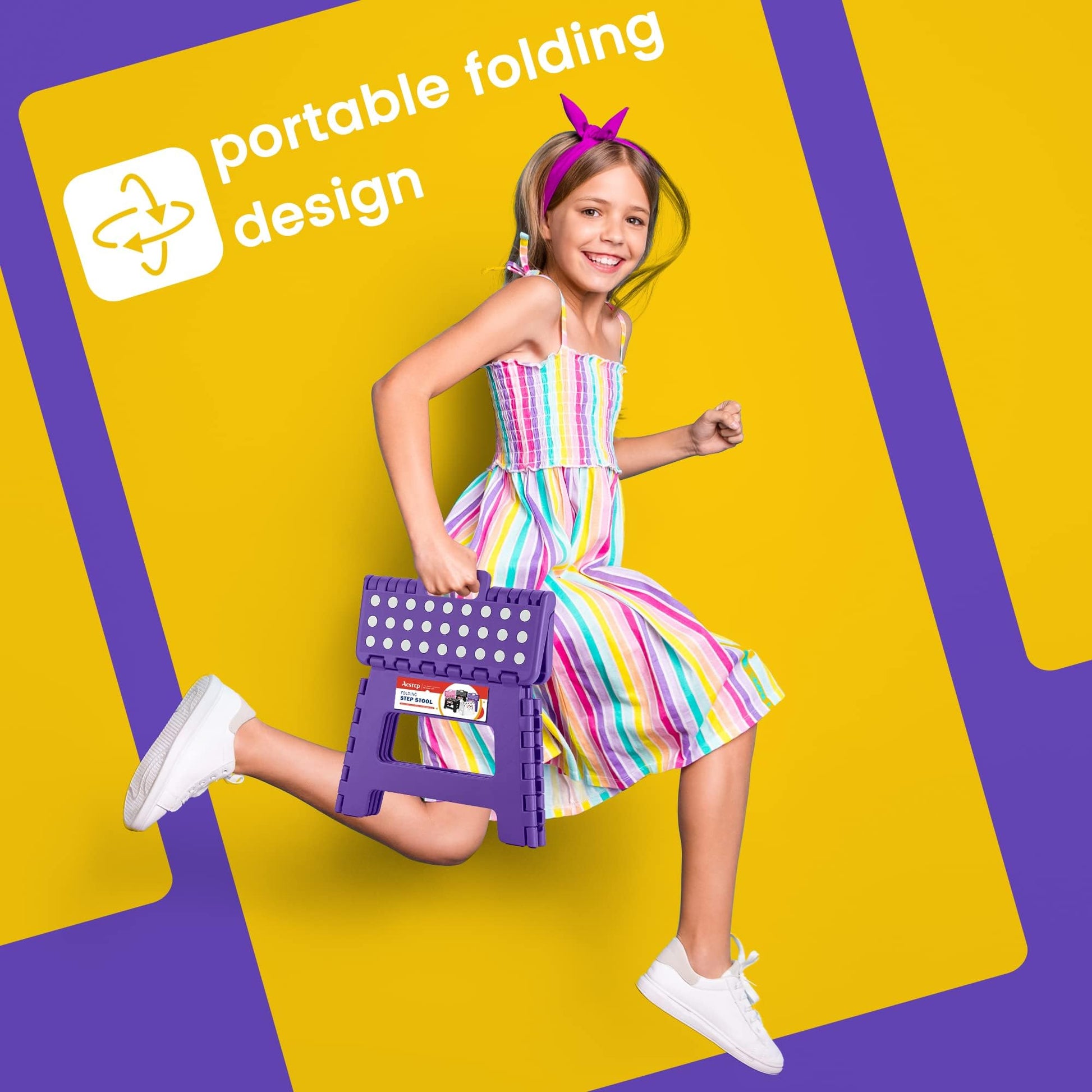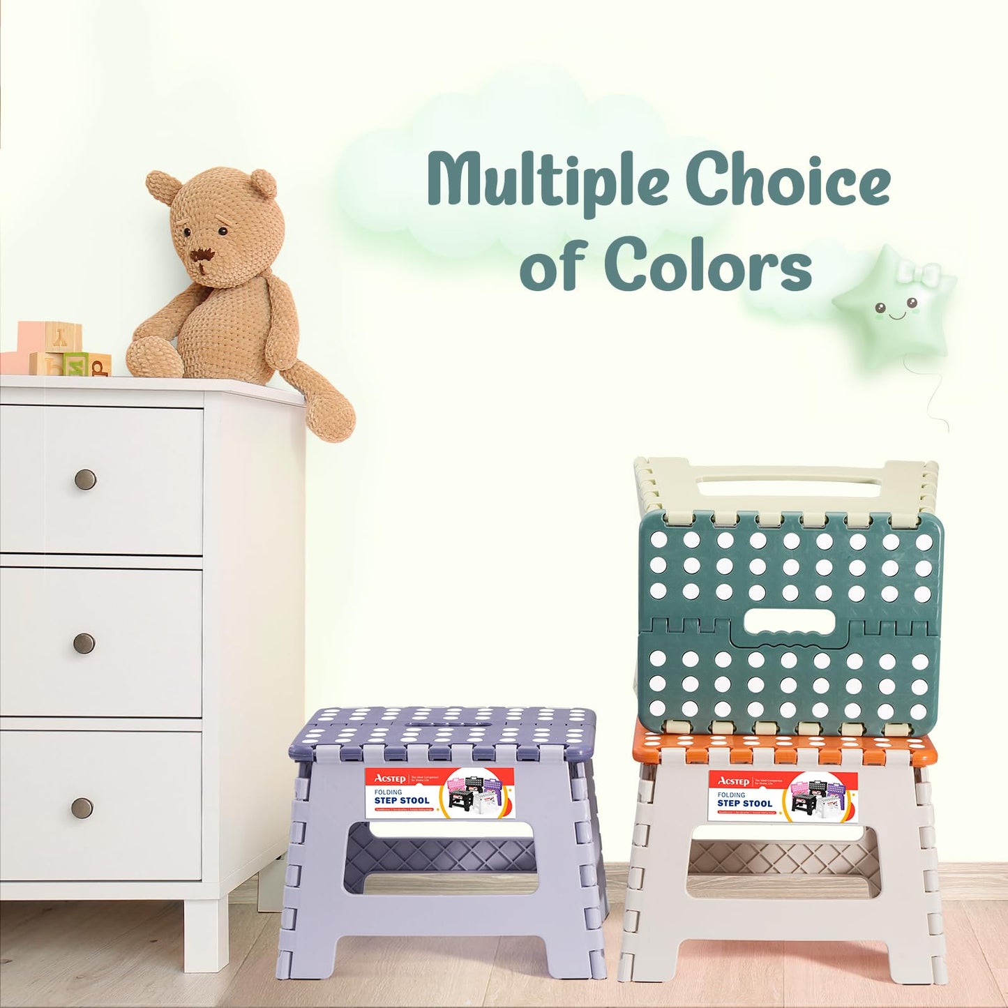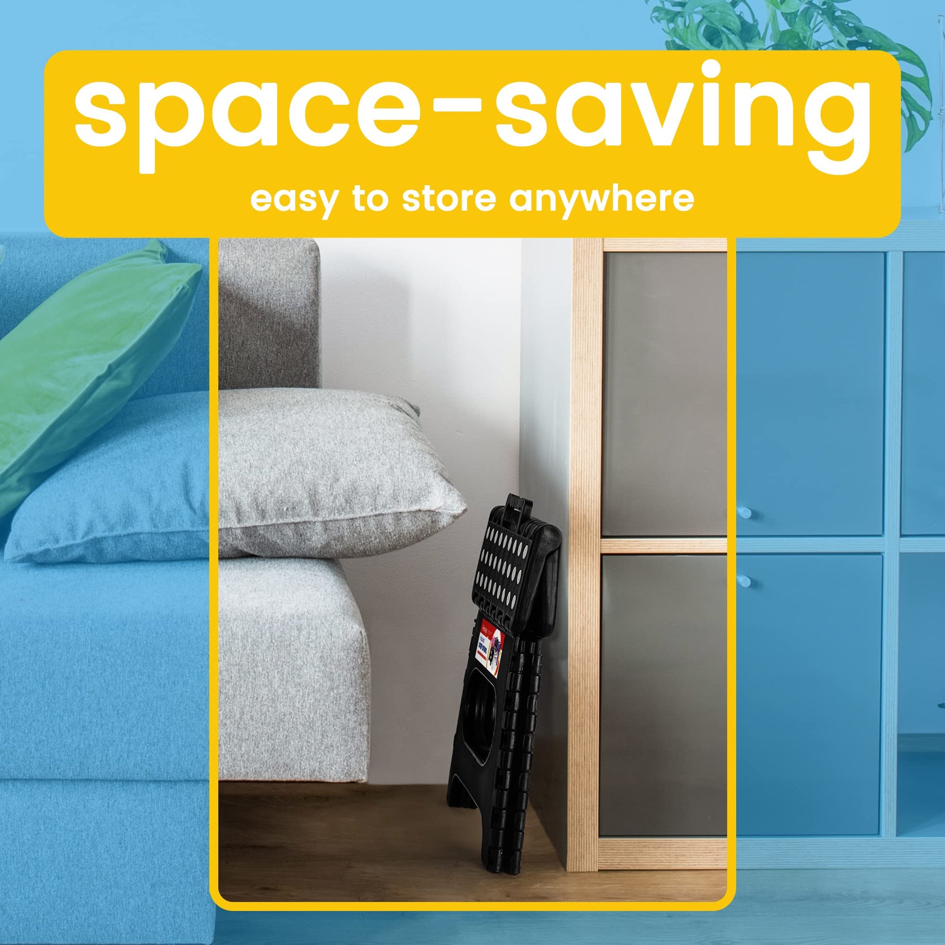 ACSTEP Folding Step Stool 9'' Tall Kids Step Stool Holds Up to 300 lb Plastic Foldable Step Stools for Kids Non-Slip Surface with Carry Handle Collapsible Stool for Home, Outdoor and Indoor(Black)