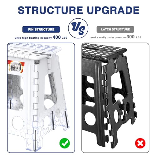 - PREMIUM QUALITY - Manufactured to highest standards, made of tough & Sustained heavy duty plastic for long lasting durability. Our folding step stool has been approved by EN 14183 Certificate, all products are qualified factory test.