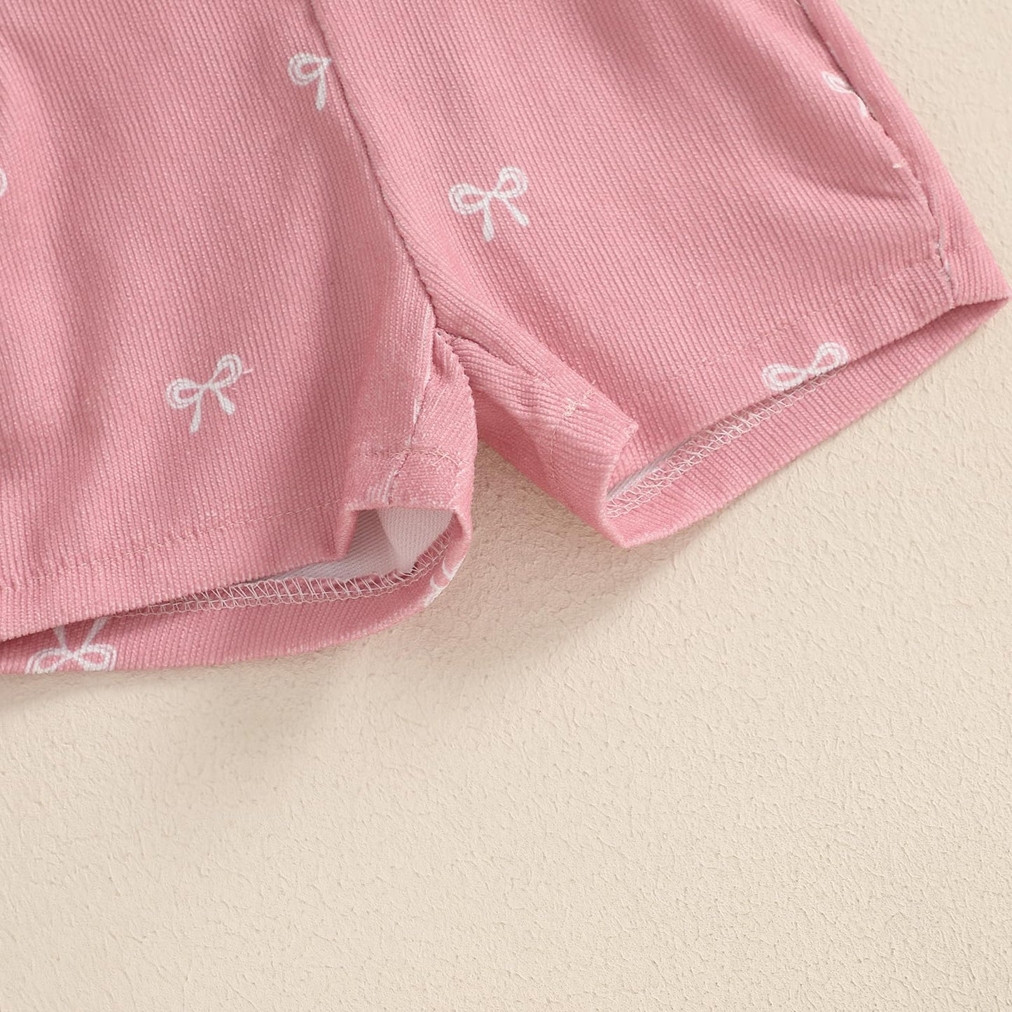Baby Girls Summer Clothes Solid Ribbed Short Sleeve Romper with Bow Print Overall Shorts 2 Pcs Set
