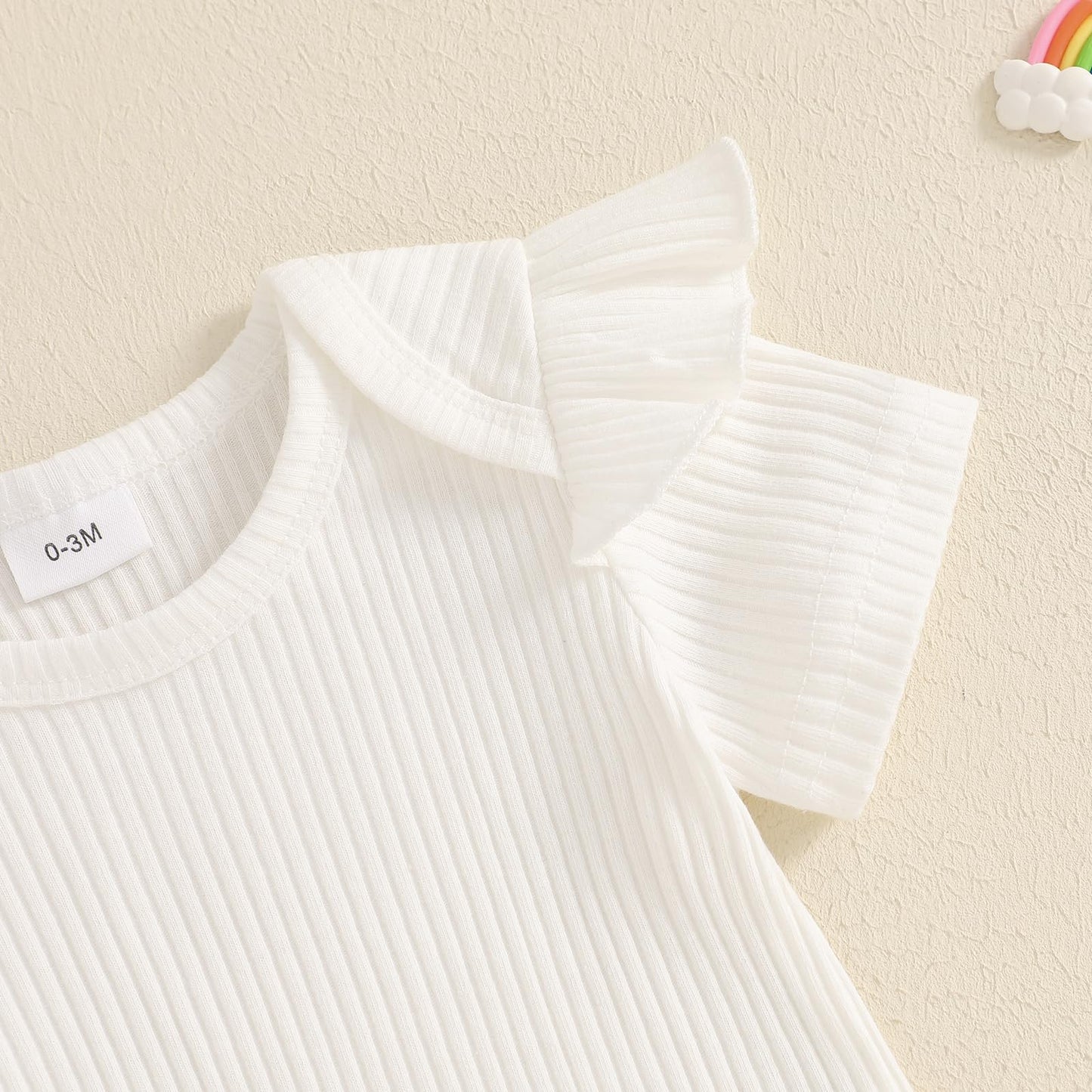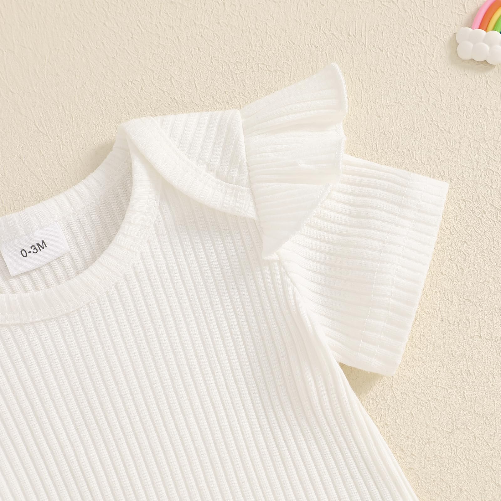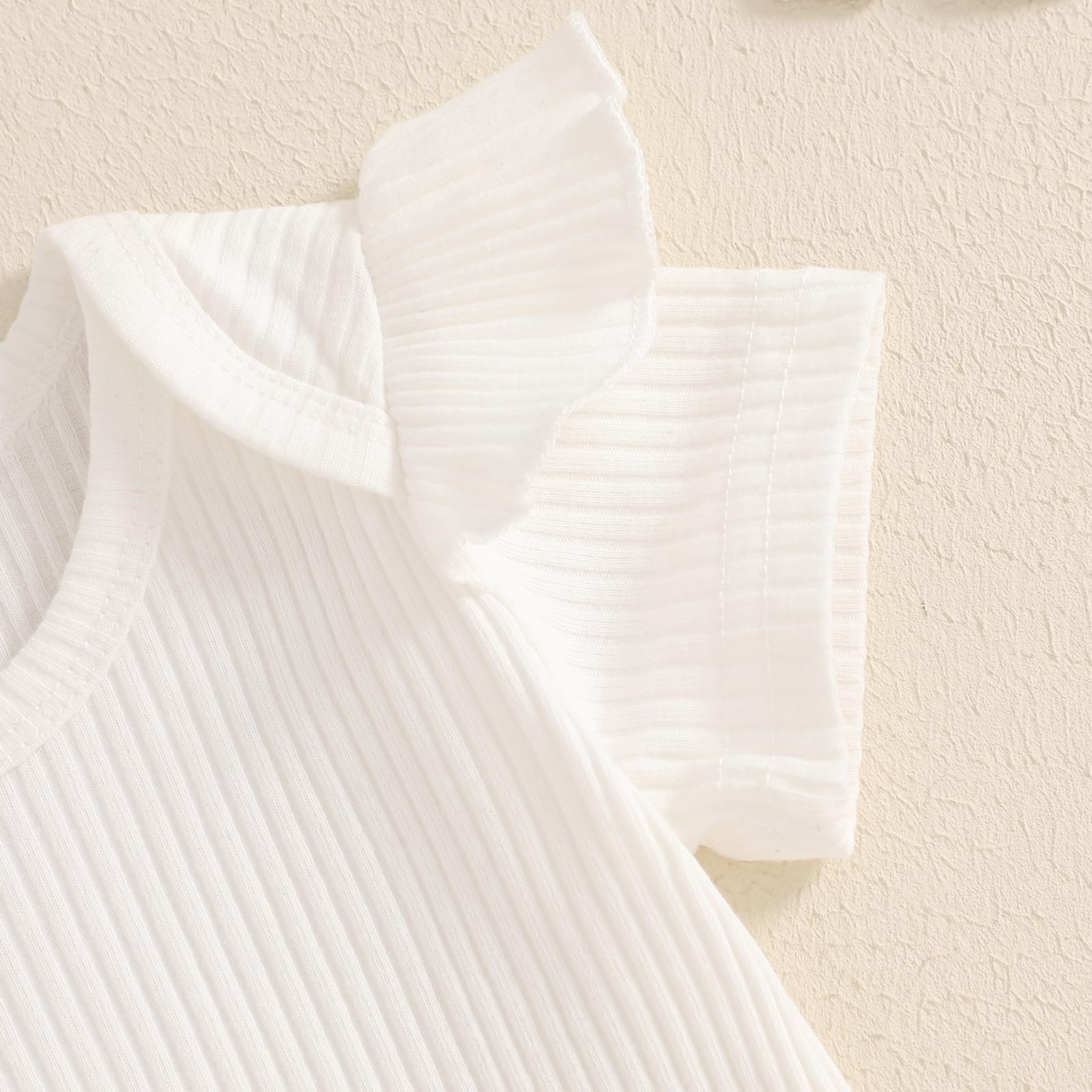 - Features: Baby girl summer outfits; Solid color ribbed short sleeve/flying sleeves round neck romper; Matching with bow print overall shorts with adjustable shoulder strap, super cute and sweet
