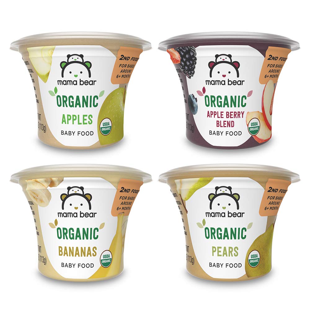 Amazon Brand - Mama Bear Organic Baby Food, Fruit Variety Pack, Apples, Apple Berry Blend, Bananas, Pears, vegetarian, 4 ounce (Pack of 12)