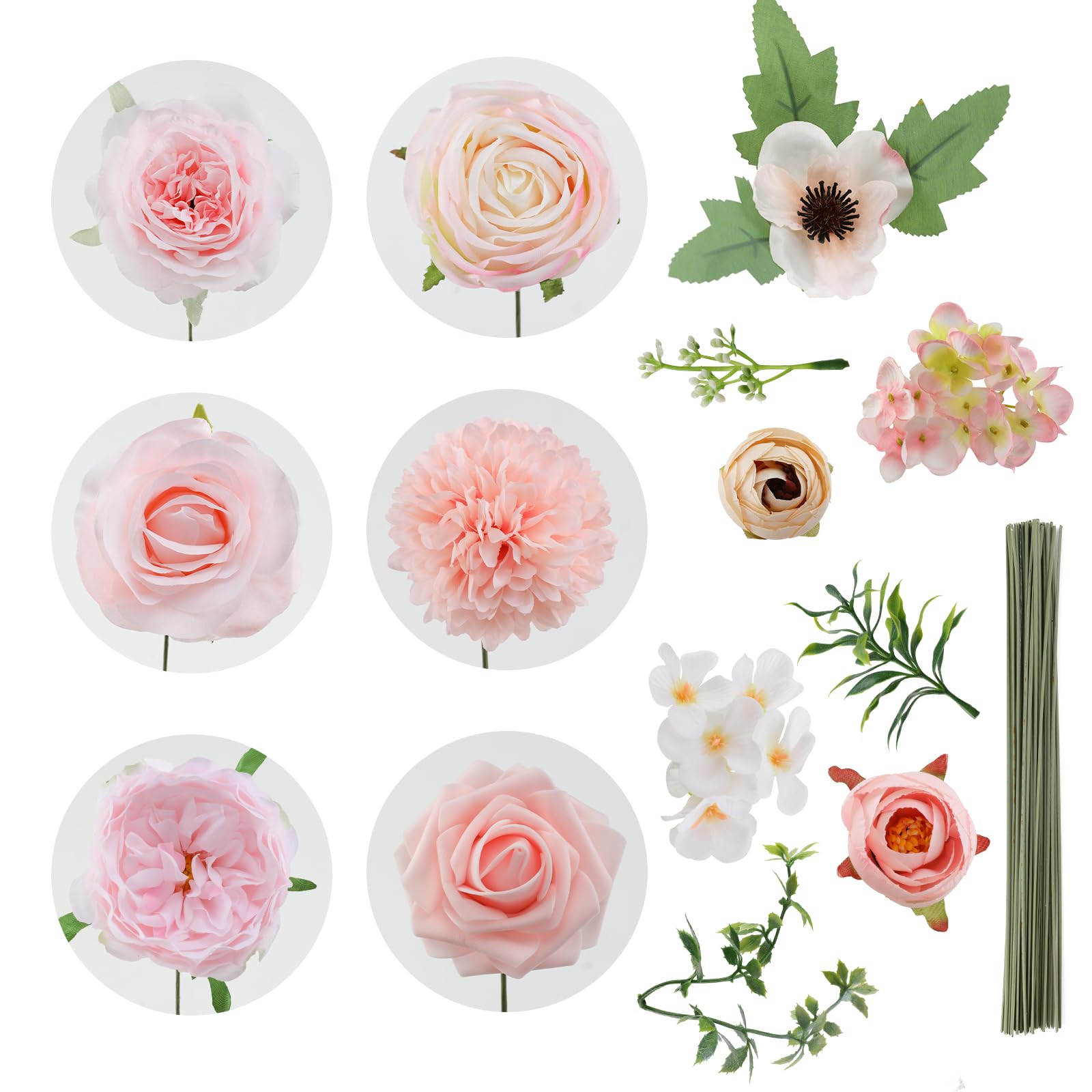 Artificial Flowers Combo for DIY Wedding Bouquets Combo Centerpieces Arrangements Party Bridal Baby Shower Home Decorations-Blush Pink