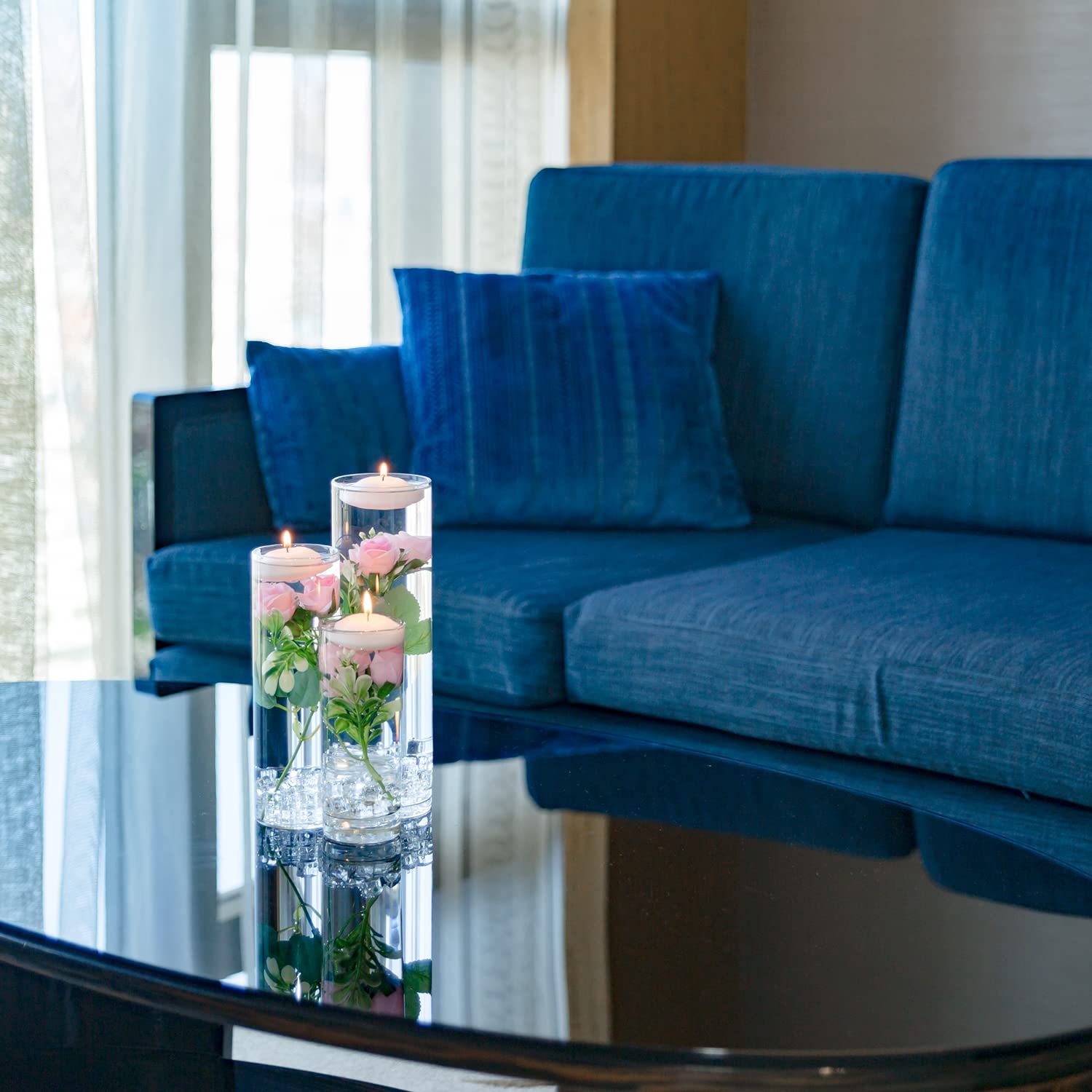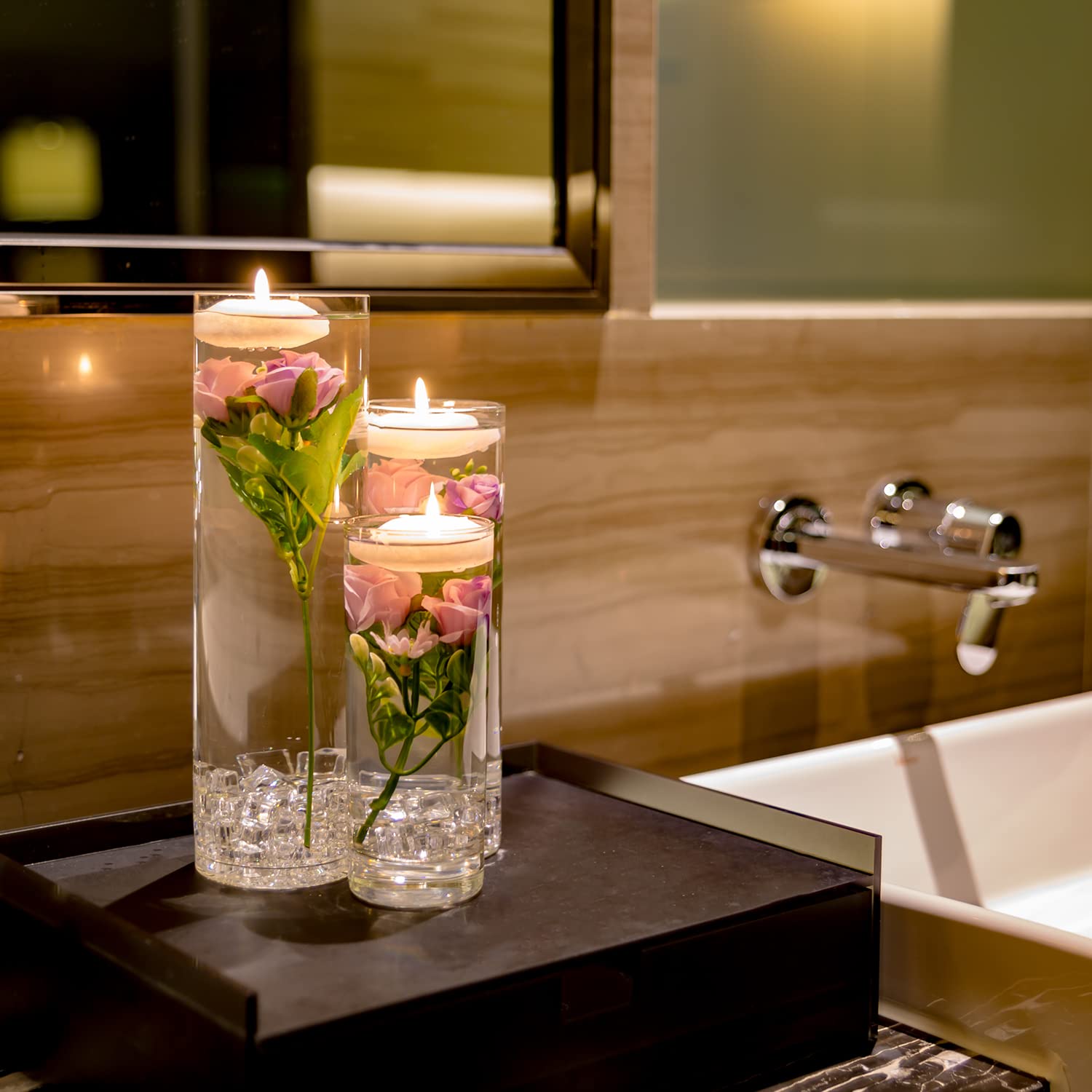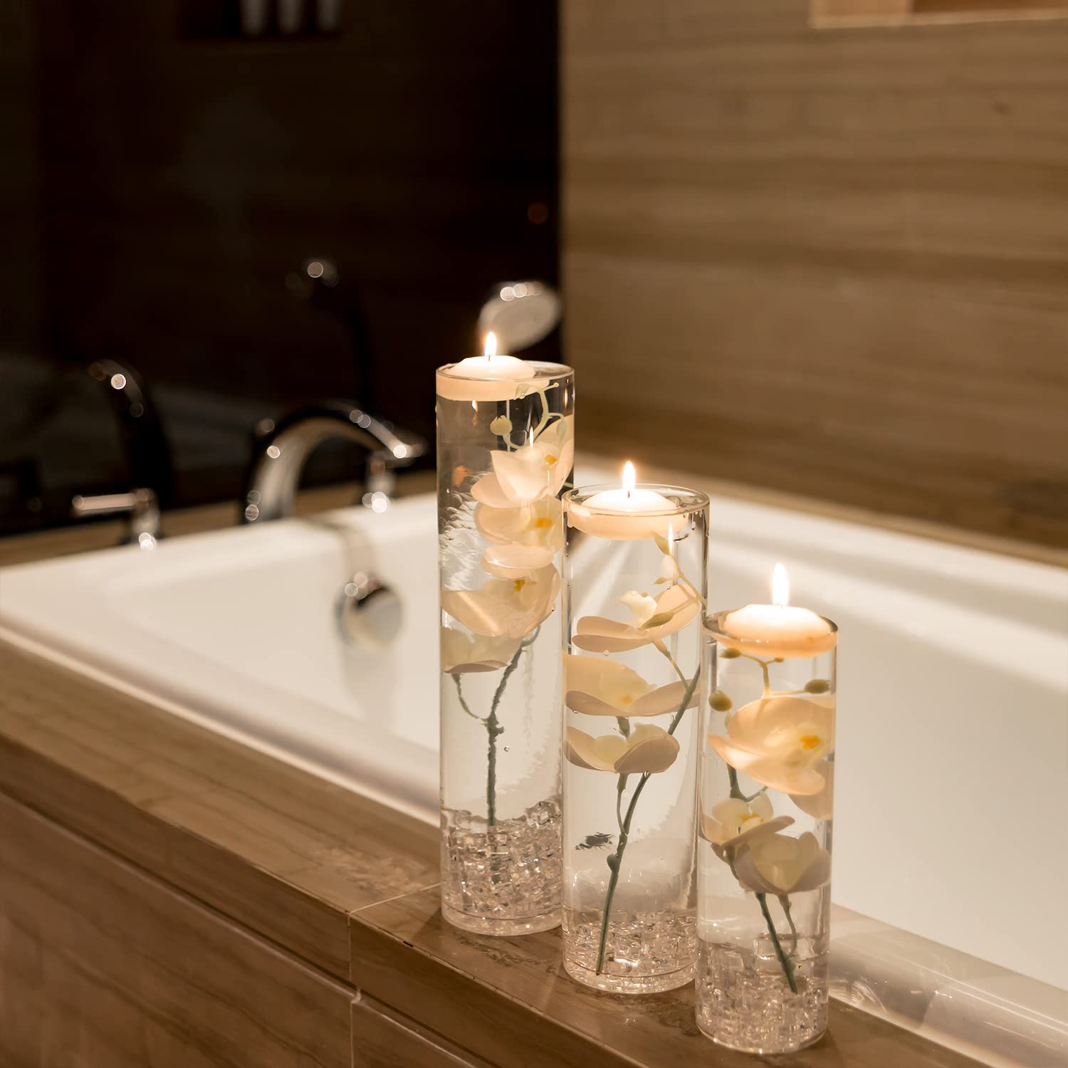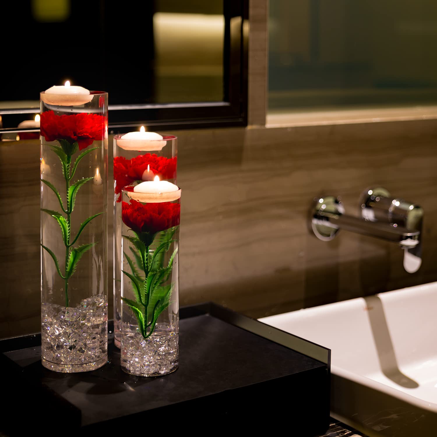 These faux flowers are made from quality plastic, durable and safe to use, fill it in the floating candle glass candle holder, our decoration will keep water clear without fading all the time