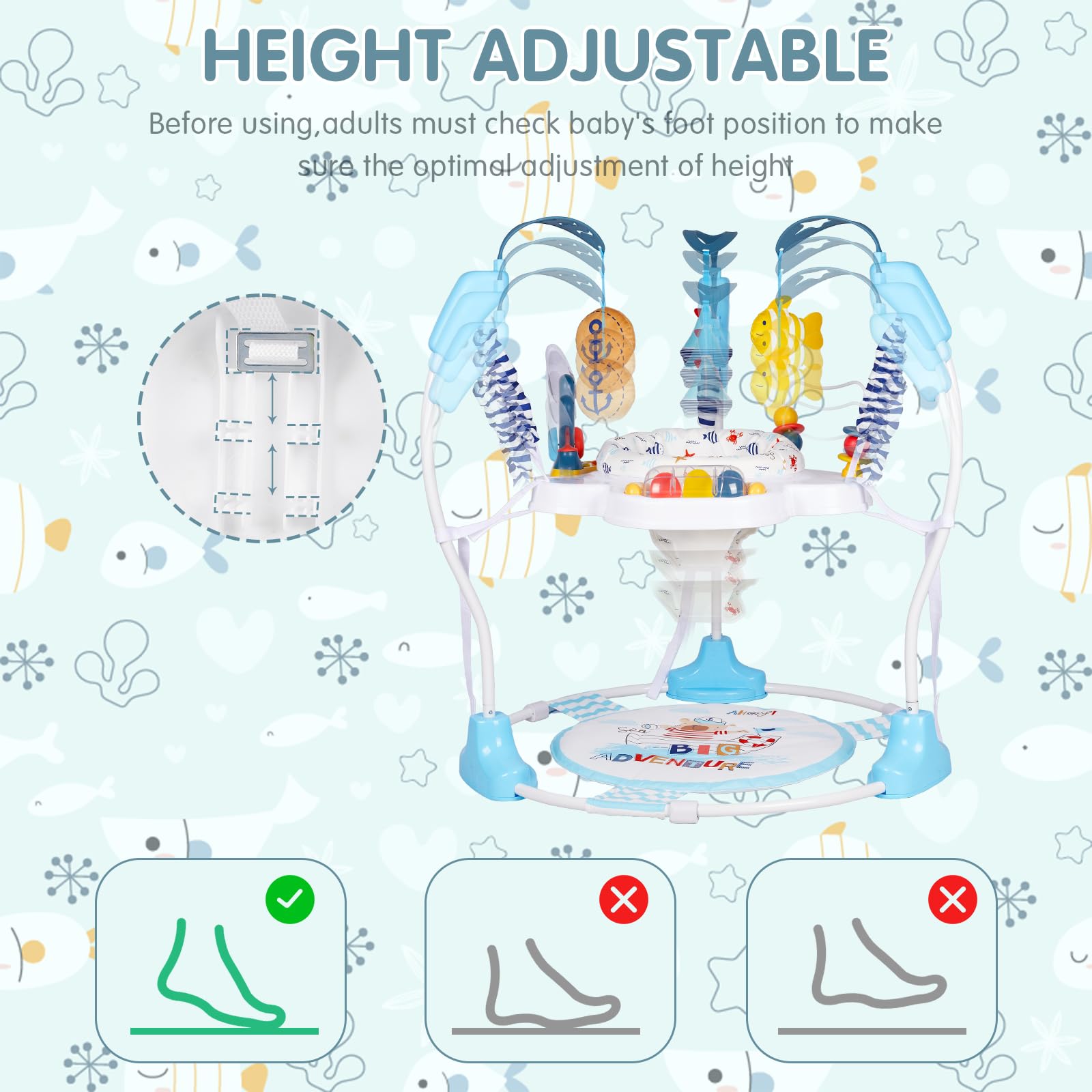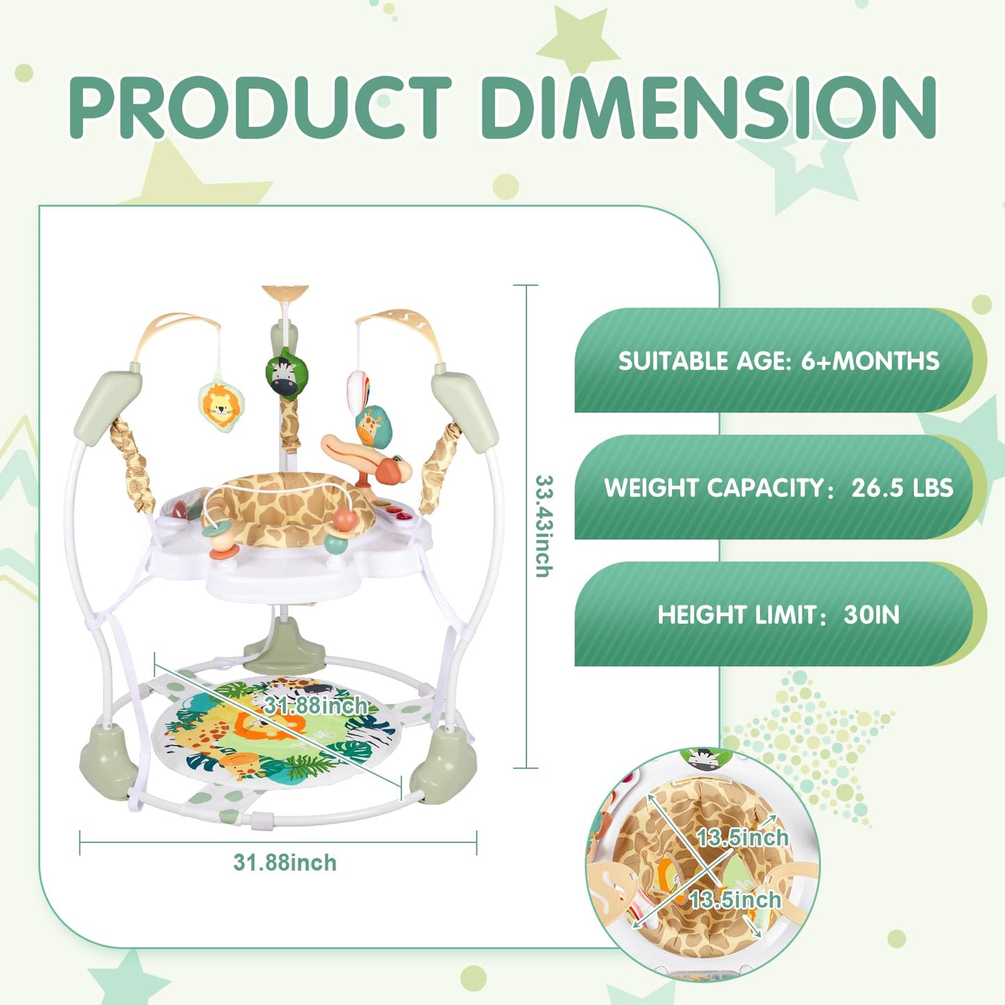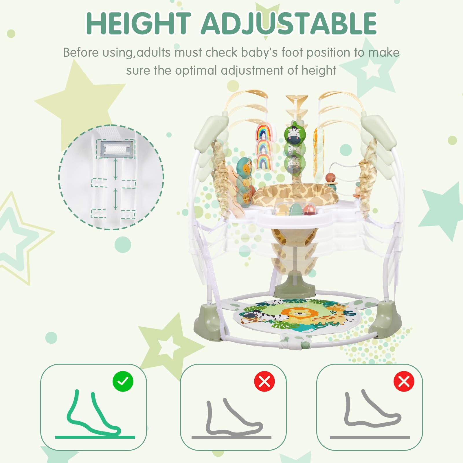 - 【Adjustable Height for Growing Babies】 This baby activity jumper offers 3 adjustable height levels, perfect for babies under 32" tall and 26.5 lbs. Easily set the right height so your baby’s feet touch the mat properly, ensuring safe bouncing and lasting use as a fun baby play center.