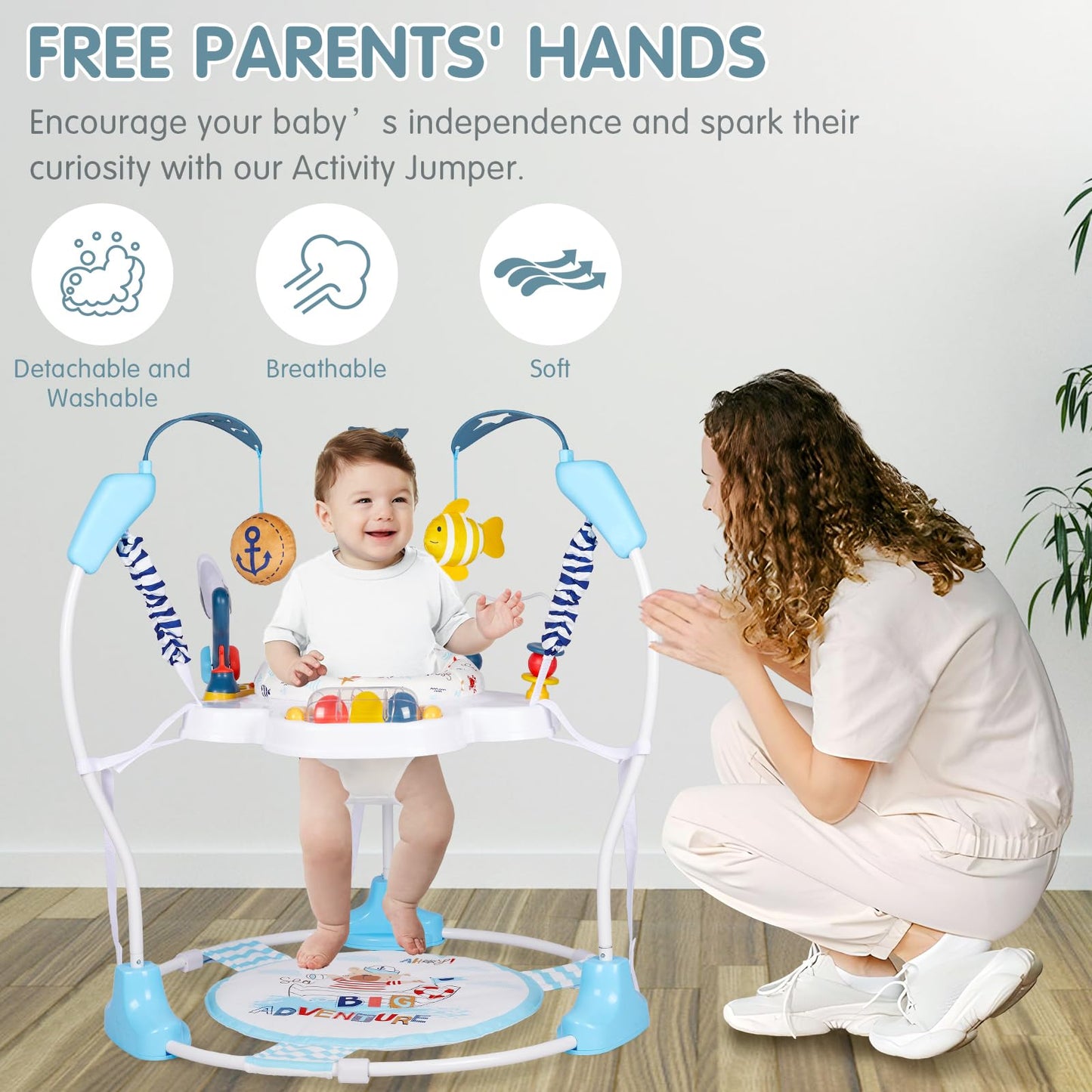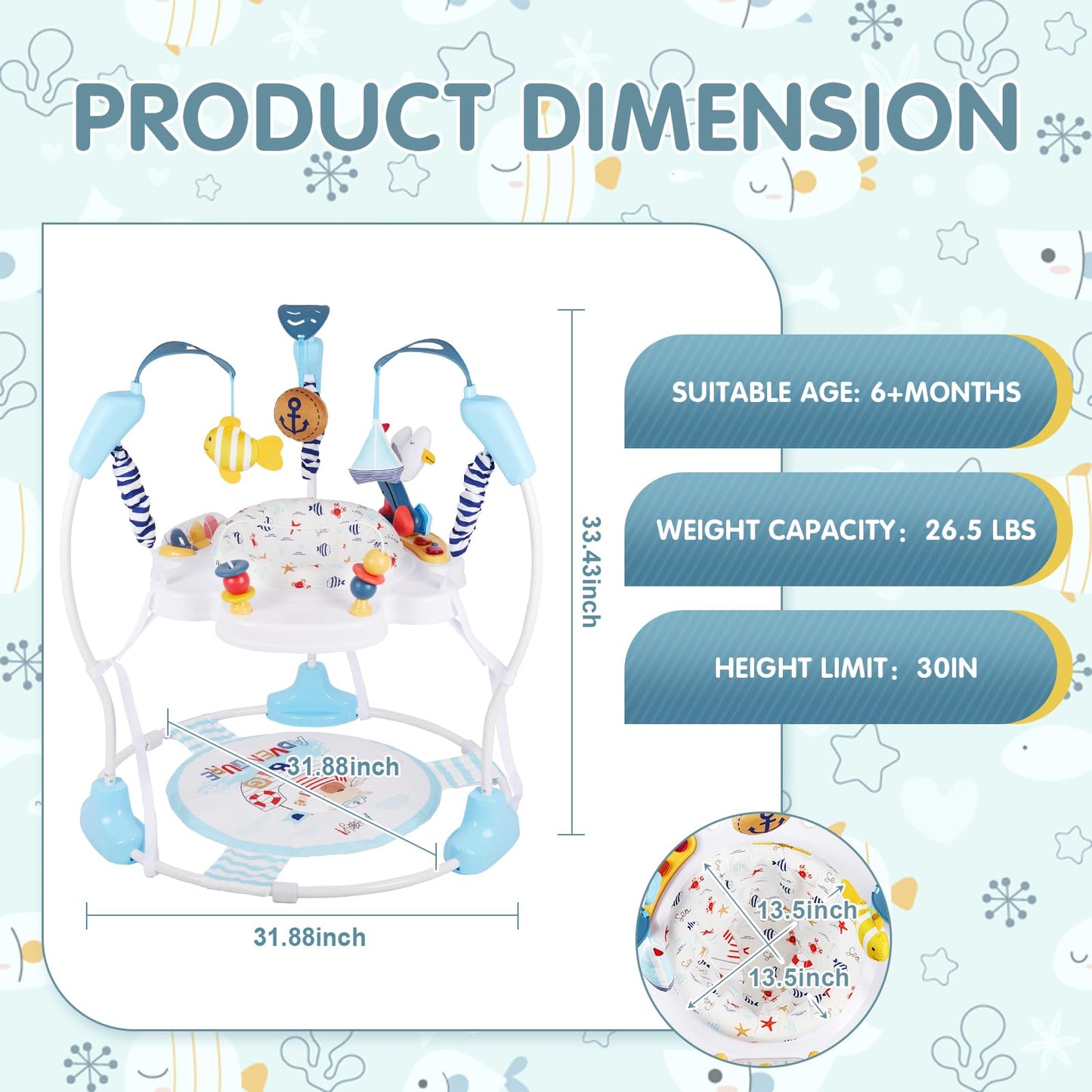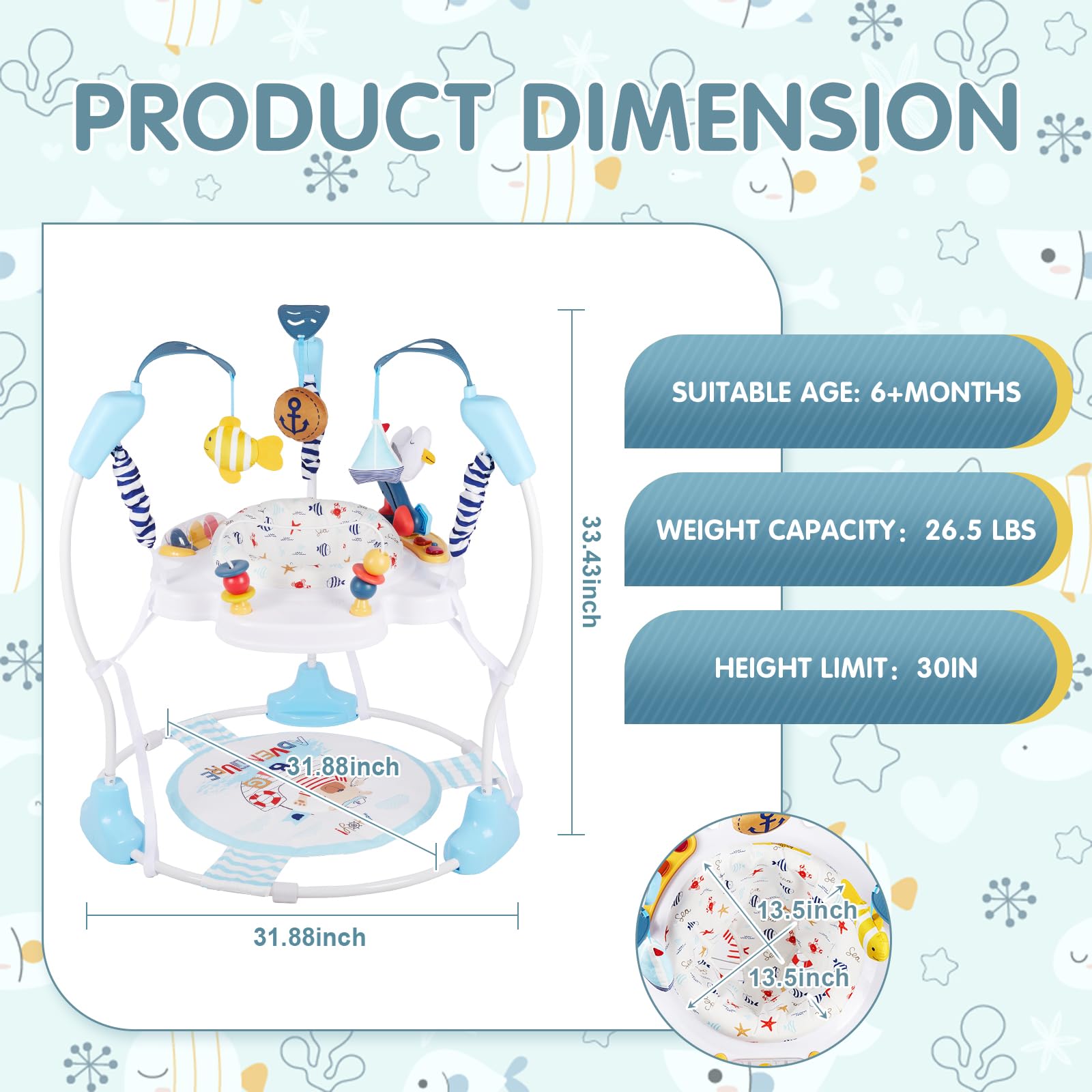 - 【Adjustable Height for Growing Babies】 This baby activity jumper offers 3 adjustable height levels, perfect for babies under 32" tall and 26.5 lbs. Easily set the right height so your baby’s feet touch the mat properly, ensuring safe bouncing and lasting use as a fun baby play center.