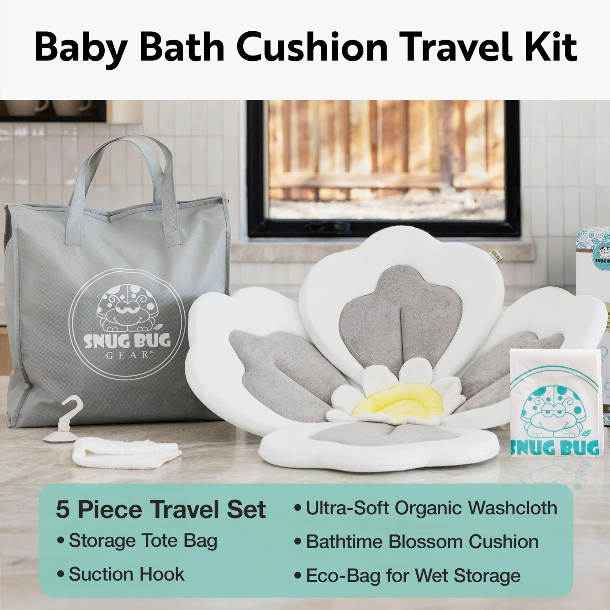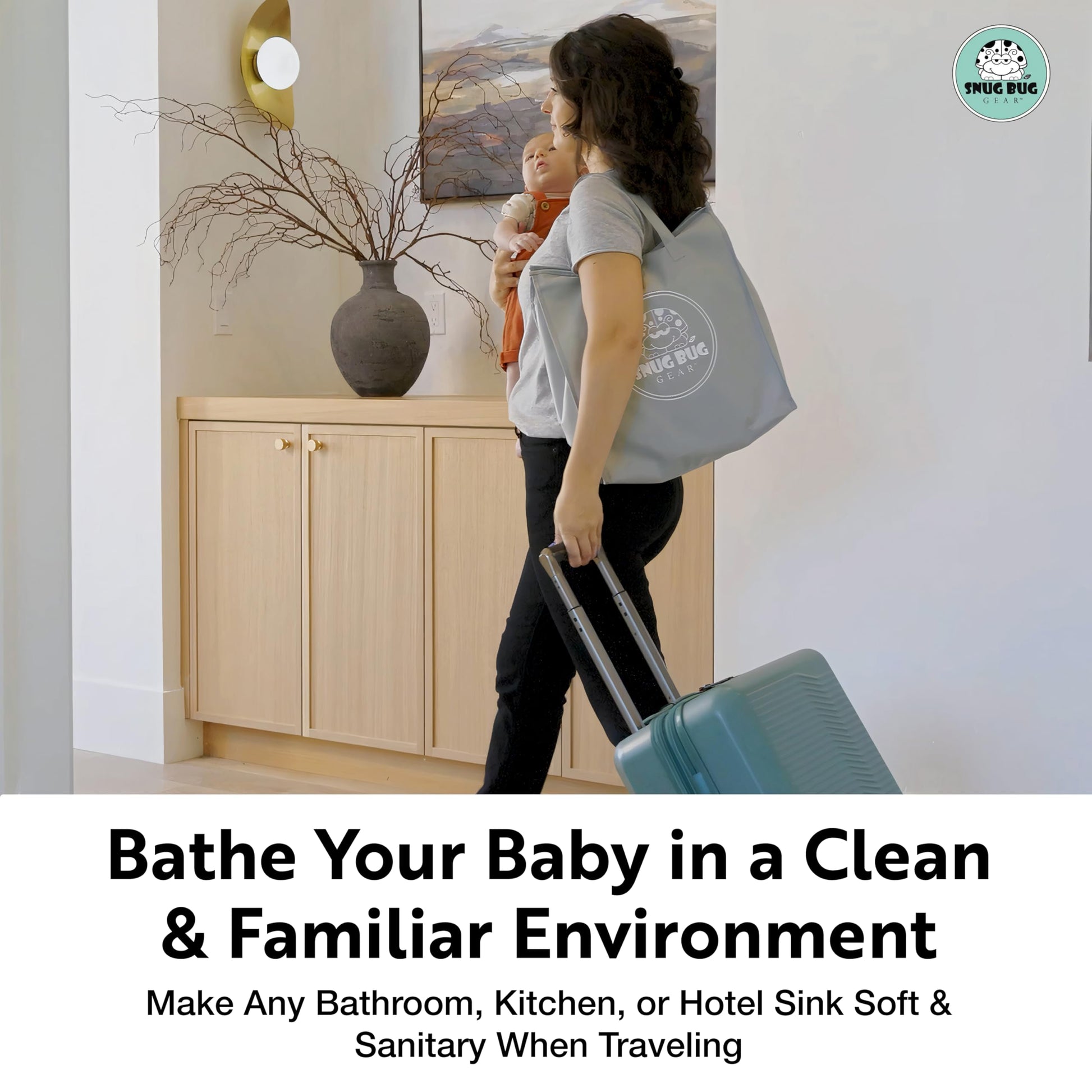 - COMPREHENSIVE BATH TRAVEL KIT: This baby bath sink set has everything a new parent needs for bathing on the go, including a tote bag, a suction hook, a gentle washcloth, and a PLA plastic eco-bag; It’s the perfect travel aid for baby bathing, ensuring you’re both always prepared for a calm and comfortable bath time