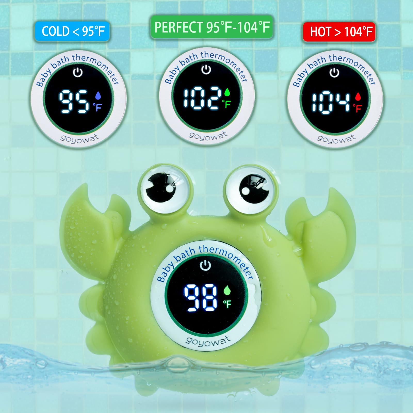 Baby Bath Thermometer with LED Display, Floating Crab Toy – 2-in-1 Water Safety Sensor for Infants, Color-Coded Alerts (Hot/Cold), Bath Tub Temperature Monitor, Cute Floating Bath Toy, Nursery