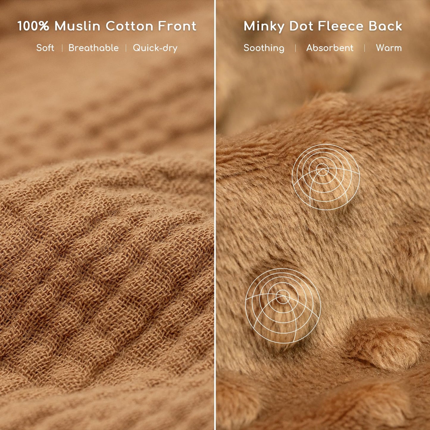 - 【Double-Sided Design for Year-Round Comfort】Yukkidds baby bath towel features two ultra-soft sides: 100% muslin cotton for breathable summer use and plush minky dot for cozy winter warmth. The reversible design ensures your baby stays comfortable in every season.