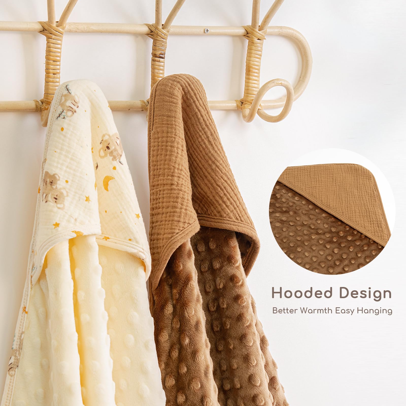 - 【Exceptional Absorbency and Soothing】Both sides of our baby towel are highly absorbent, quickly wicking away moisture to keep your baby dry and warm after every use. The minky dot side also provides a soothing texture that helps relax your baby, making it perfect for post-bath cuddles or bedtime.