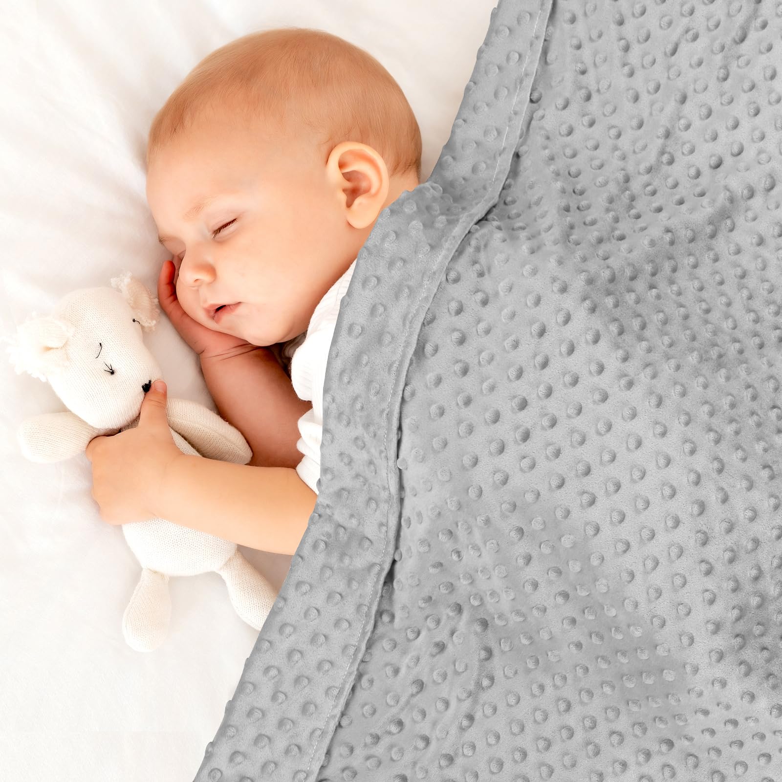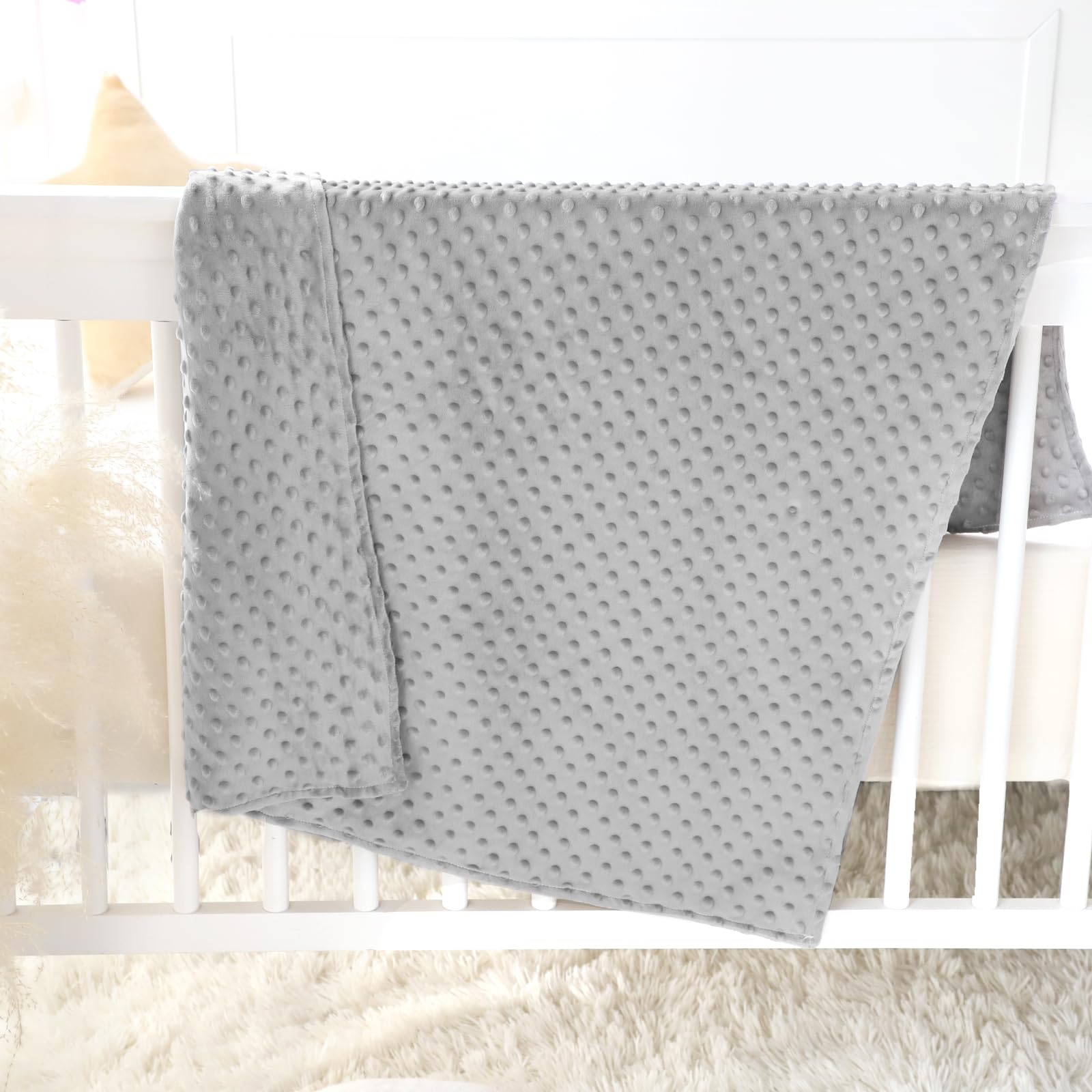 - Double Sided Dots: The toddler blanket has lovely polka dot bubble texture, increasing the friction between the blanket and the baby, so that the blanket is not easy to slip; Baby can gently touch these bubbles when playing, enjoy the fun of exploration