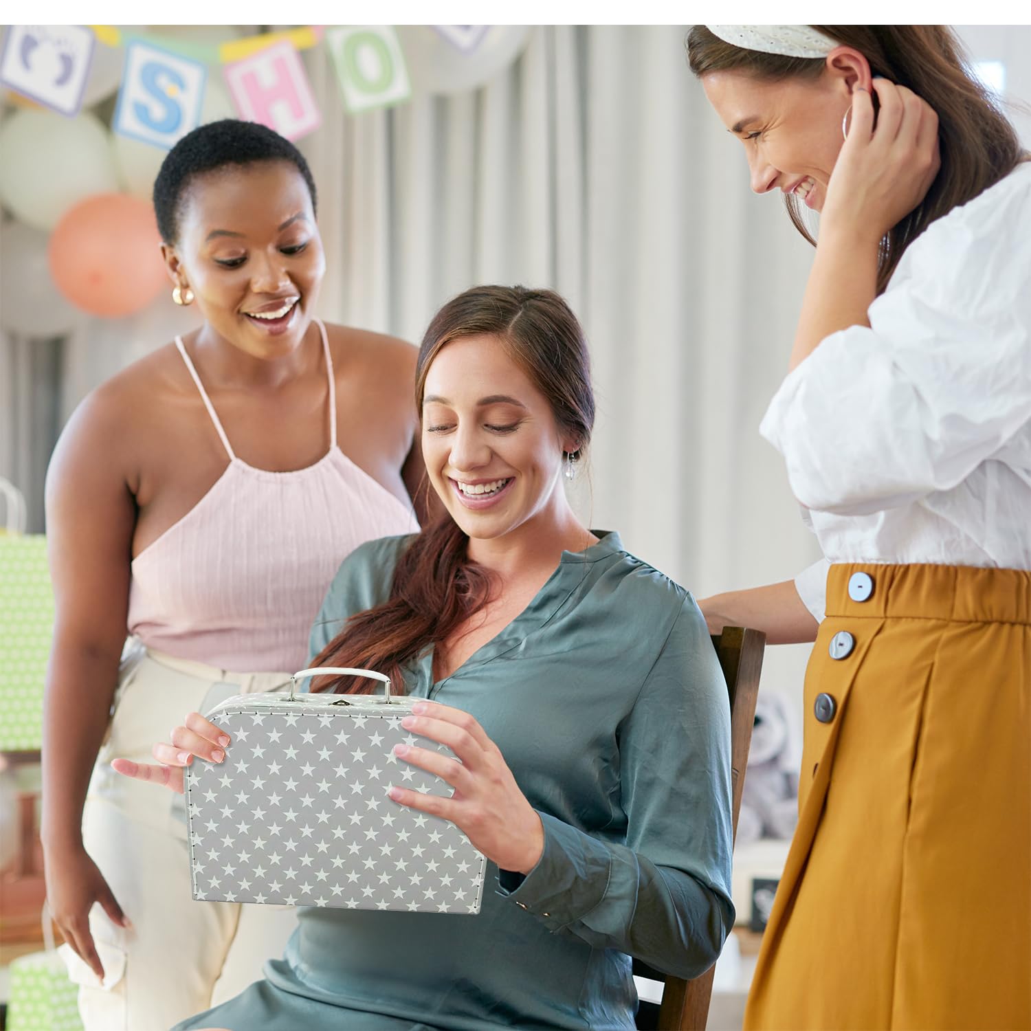 - THE GIFT THAT KEEPS GIVING – New parents can continue to use your baby shower gift ’s charming baby gift box for STORAGE or DISPLAY in the nursery. With its NEUTRAL gray color, this new born baby suitcase gift box complements a range of NURSERY DECOR, for both baby girl and baby boy.