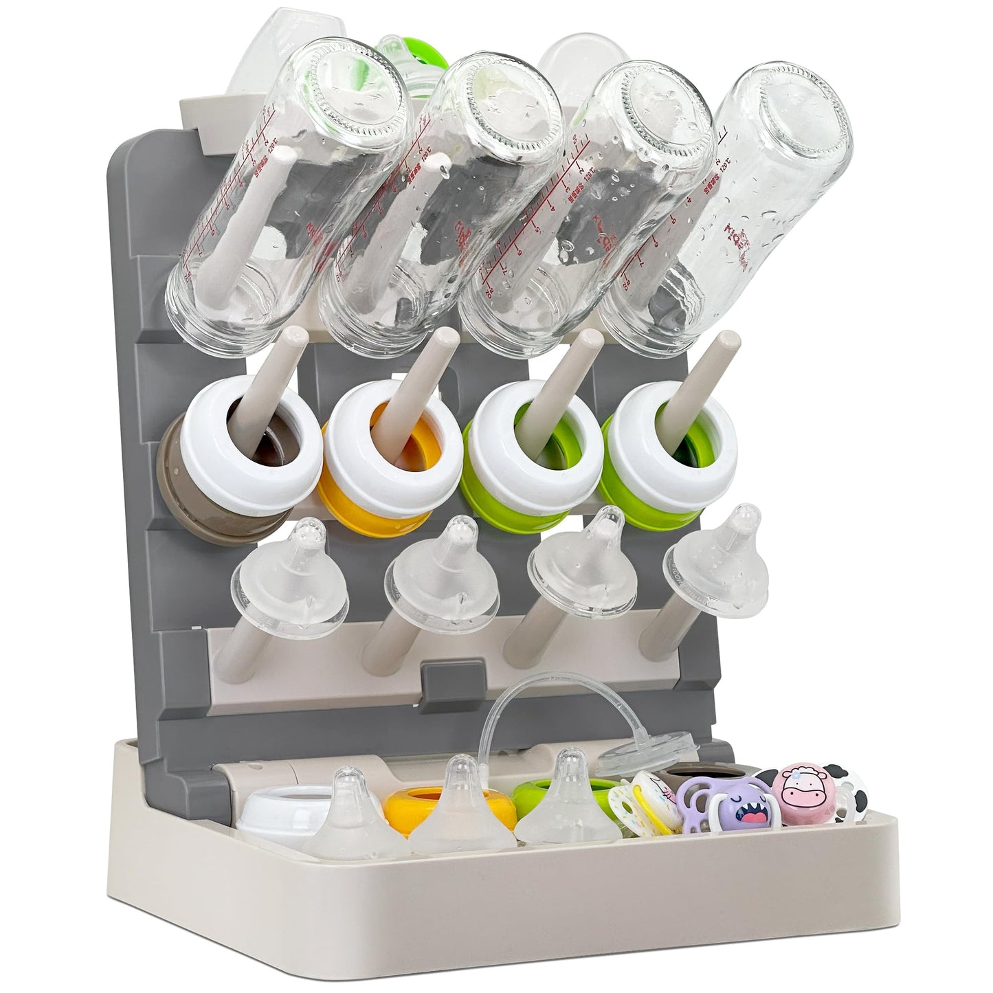 - 【Space-Saving Vertical Bottle Drying Rack】 Maximize your counter space with our vertical baby bottle drying rack, designed to hold up to 12 bottles along with all essential baby accessories in one compact spot. Easily dry bottles, pacifiers, pump parts, and nipples, saving you time and effort.