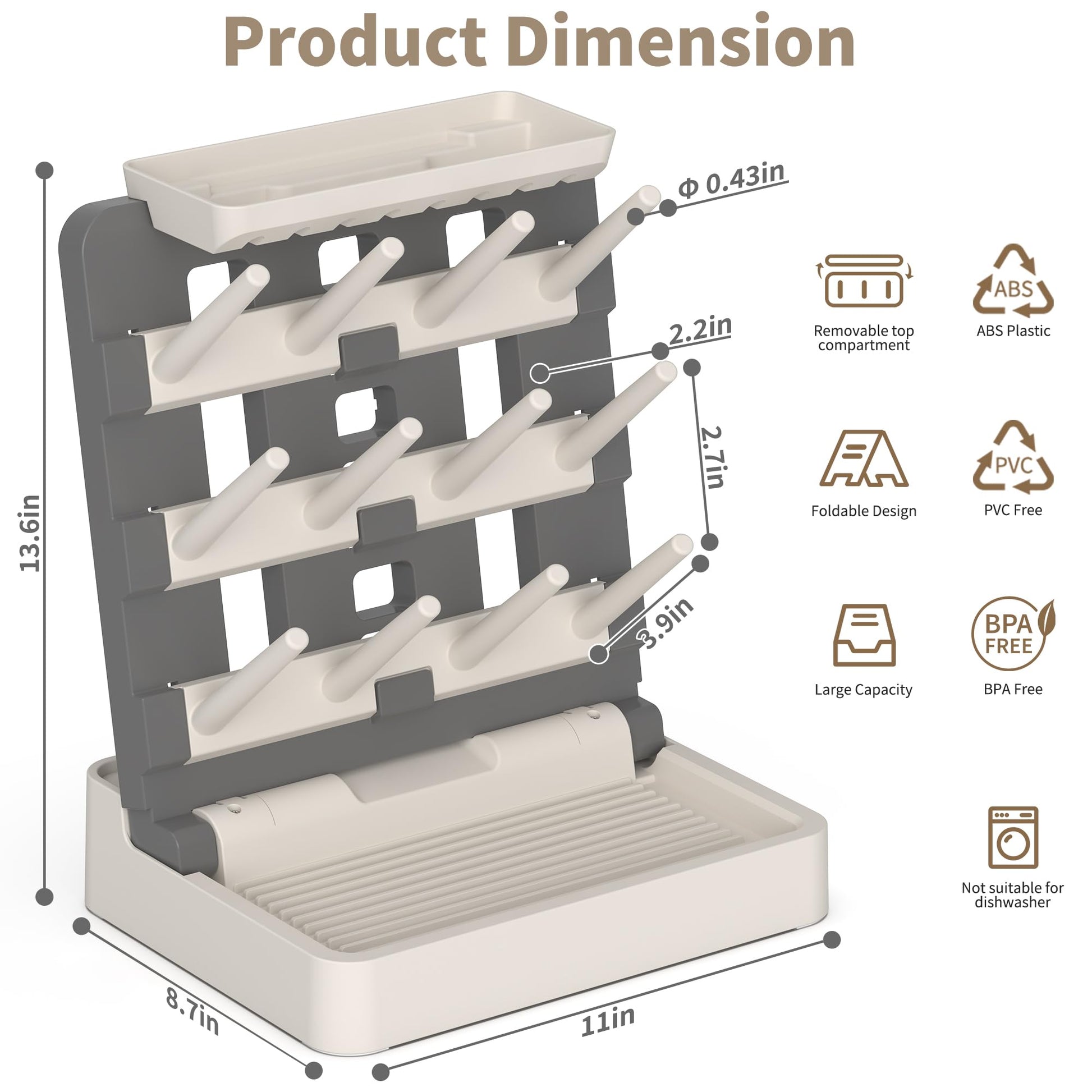 - 【Sturdy & Safe Materials】 Made from BPA-free, food-grade materials, this drying rack is not only safe for your baby but also built to withstand daily use. Compact in size at 8.8"D x 11.3"W x 13.7"H, it fits neatly in your kitchen.