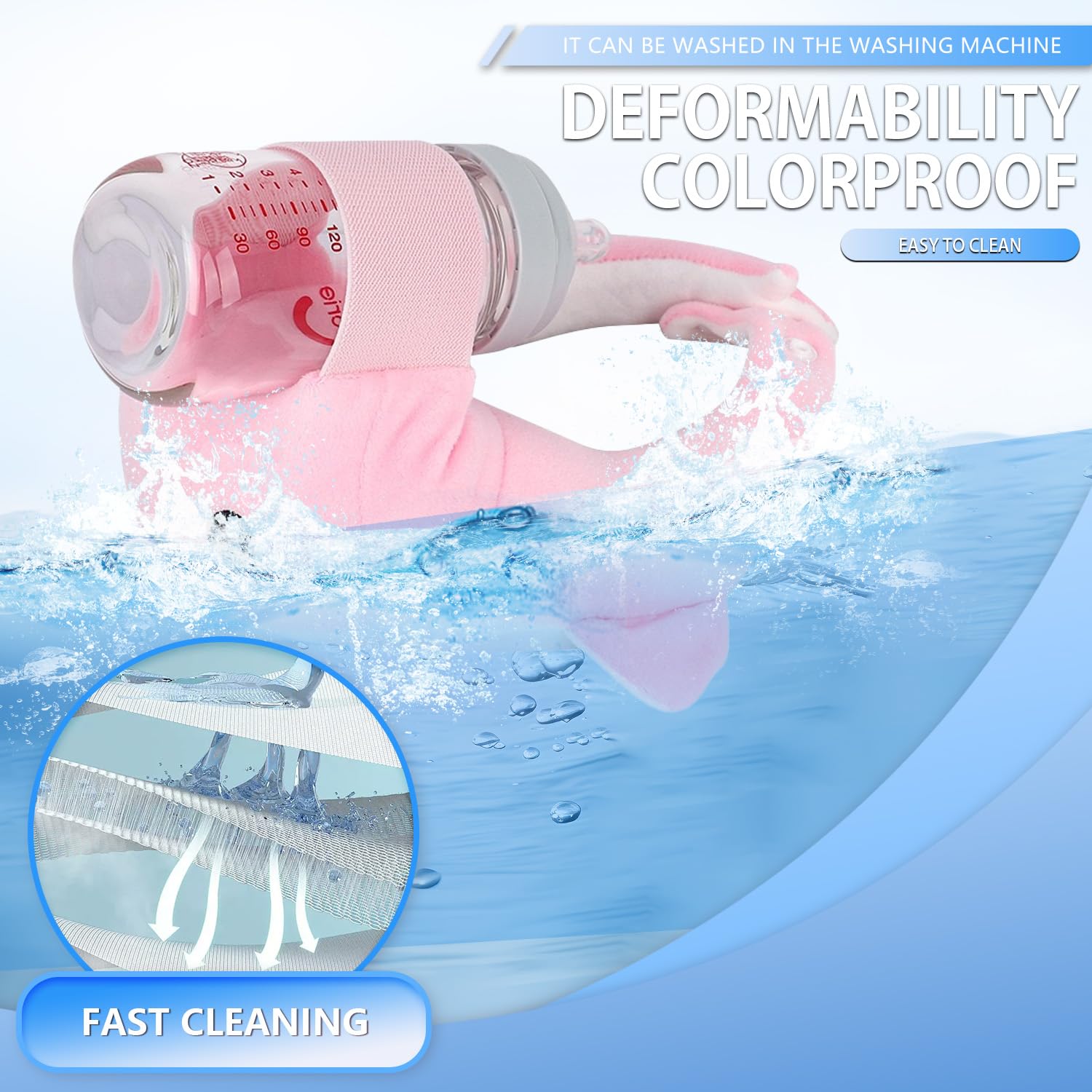 - 【Flexible and adjustable design】This fuzzy feeding baby bottle holder features several button adjustment settings that allow you to customize it to fit your baby's size and keep it comfortable