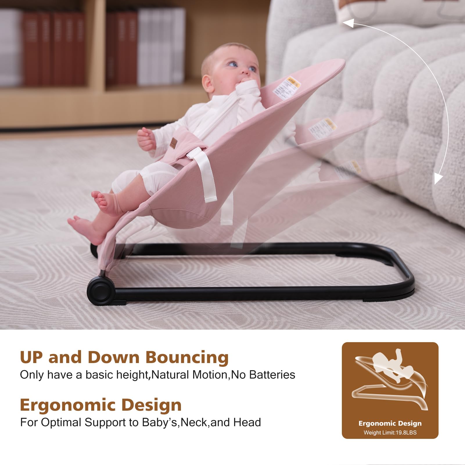Baby Bouncer,Baby Bouncer Seat,Portable Infant Bouncer with 3-Point Safety Harness,Ergonomic Bouncy Seat, Newborns Bouncer for Babies 0-6 Months up to 20lbs,ASTM-Certified(Pink)