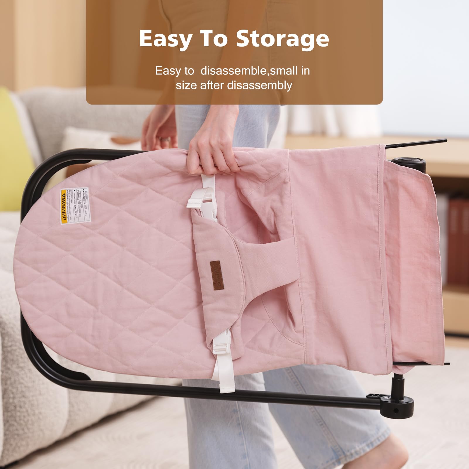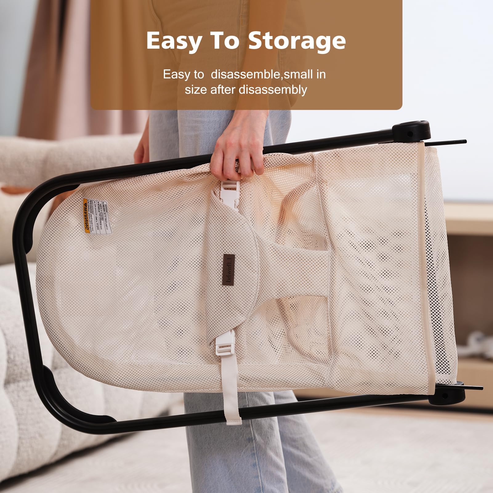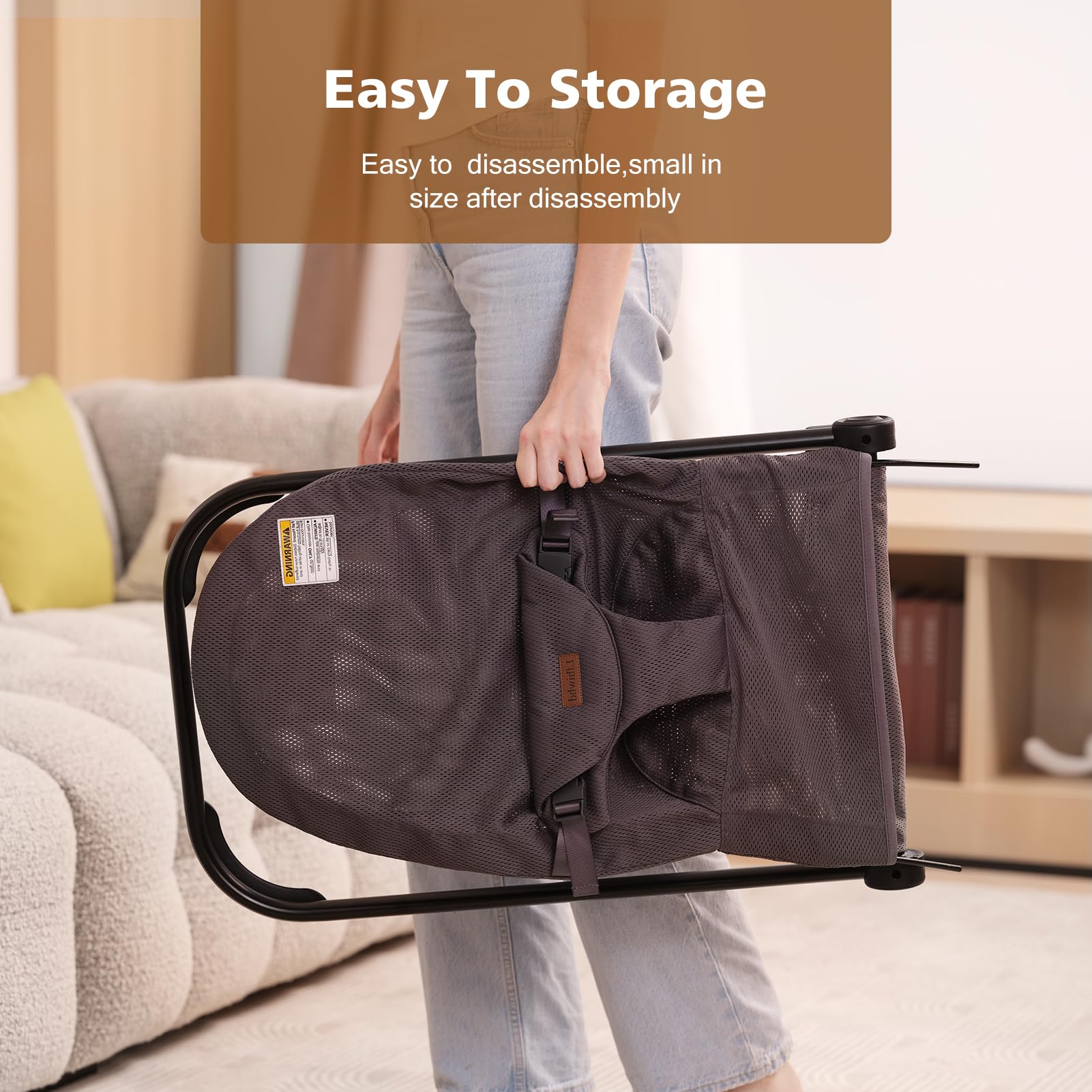- User-Friendly Design for Easy Portability:Easily assemble this baby bouncer seat in just 3 minutes without any tools required.It features a easy disassembly.Folding is simple, making it convenient for storage and movement when using at home, doesn't take up much space.Plus, The lightweight design of this baby bouncer makes it easy to carry around,free traveling