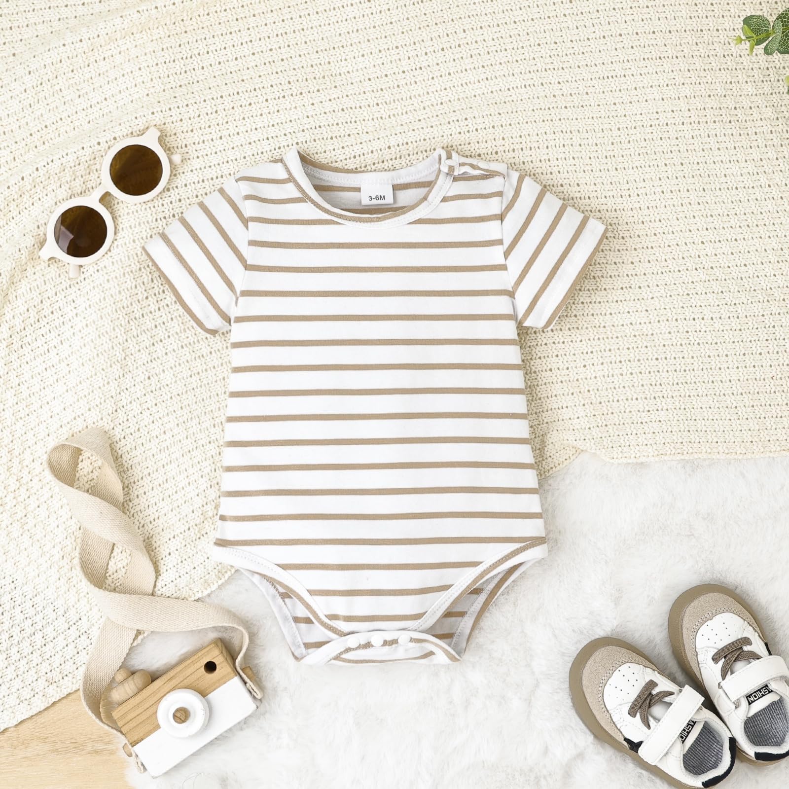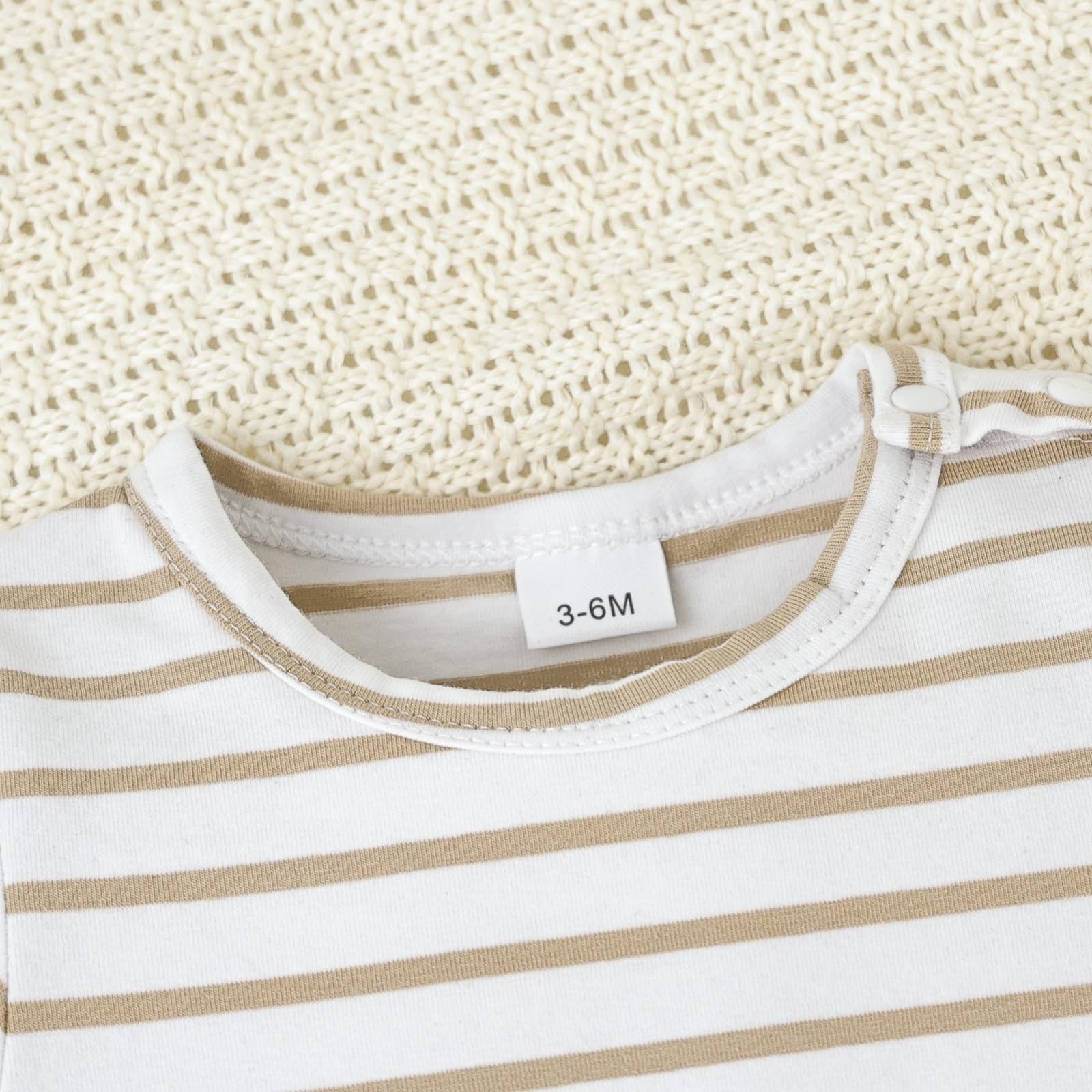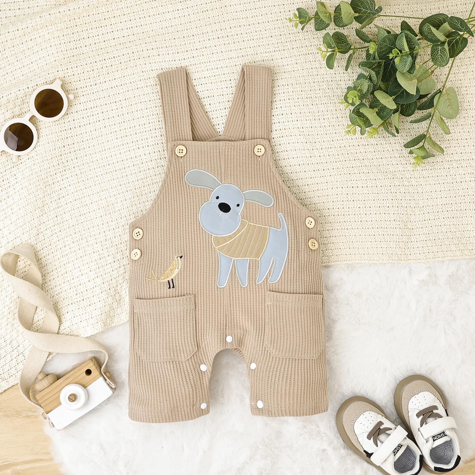 - Complete Set: Includes 1 x Baby Short Sleeve Striped Romper + 1 x Baby Cartoon Dog Overall Shorts. This coordinated outfit set offers a stylish and adorable look, making dressing up fun and effortless.