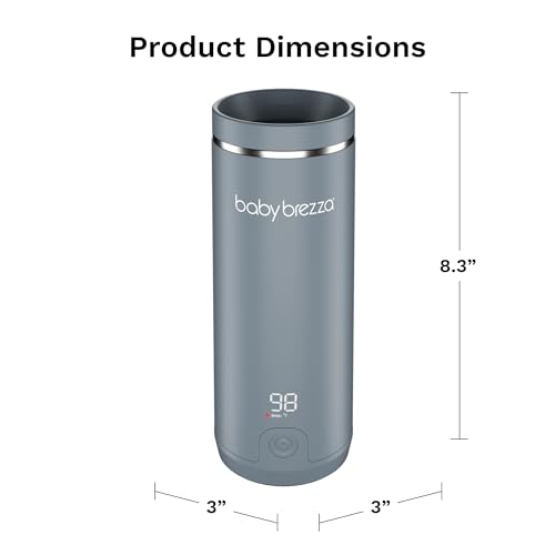 The Baby Brezza SuperFast Portable Bottle Warmer is the fastest, most advanced way to warm breastmilk, formula, water or a filled milk storage bag on the go. Now available in bold Black color. It's clinically proven to warm up to 67% faster than other portable warmers, including 8 oz in 3 minutes (from room temp to 98°F). Its Advanced Sensor Technology safely and evenly warms breastmilk and formula from top to bottom, protecting nutrients. No more adapters, leaks or turning bottles upside down! This rechargeable travel warmer warms up to eight 6 oz bottles (from room temp to 98°F) on a single charge, and it easily fits in cupholders or bottle pockets in diaper bags and backpacks, cars and strollers. The interior stainless-steel cup holds 9 oz of liquid or a filled 6 oz milk storage bag, and the dishwasher safe lid features a 360° pour spout. Choose from 4 warming temperatures: 80°F, 98°F, 99°F, or 103°F. Includes USB-A charging cable; Power adapter not included; 1 year limited warranty (not valid if shipped or used outside the US).
