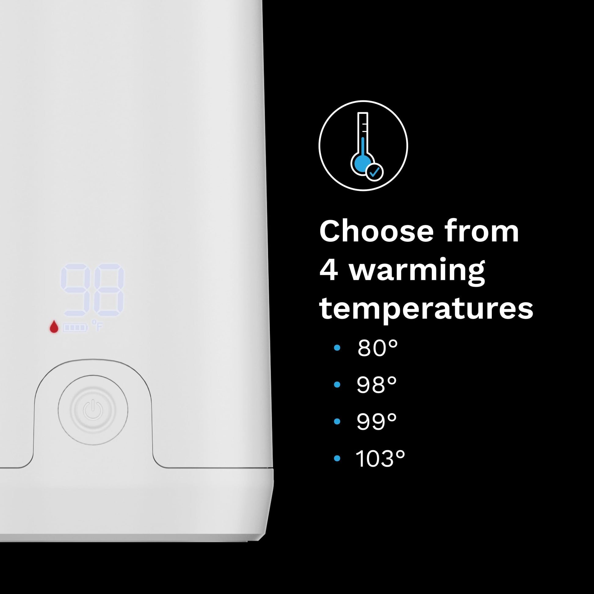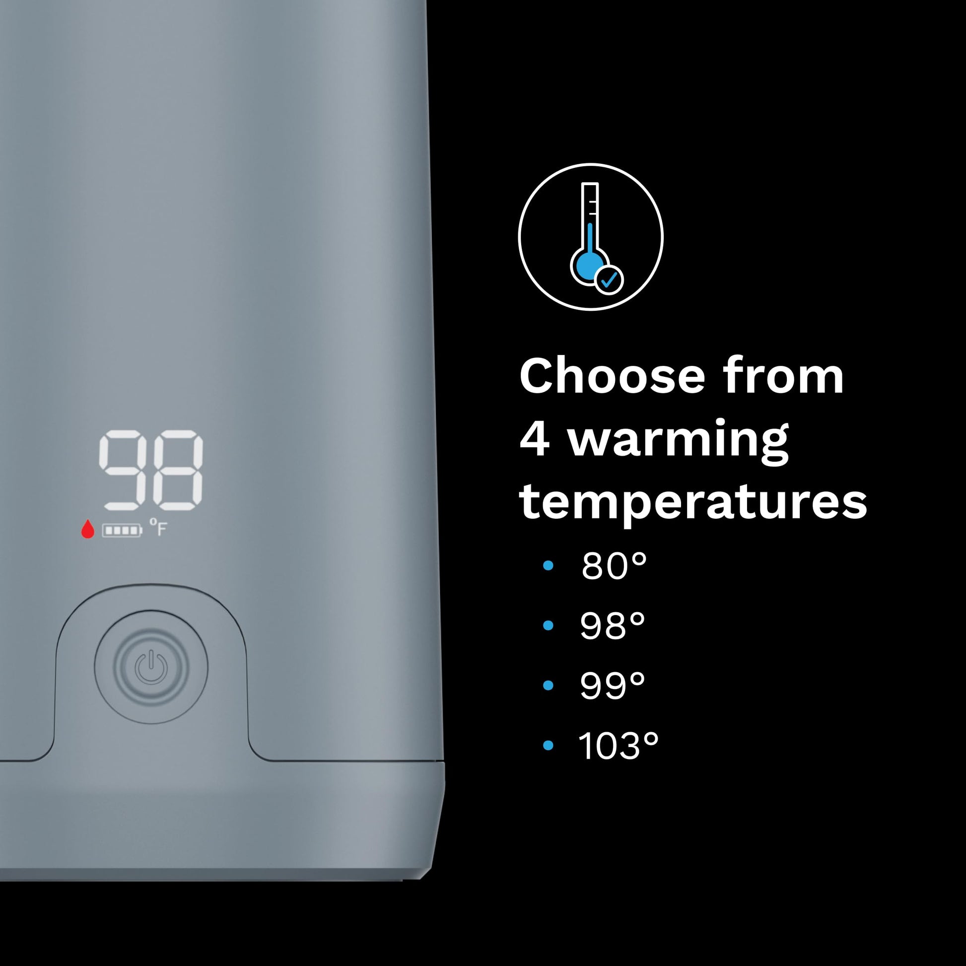 - CLINICALLY PROVEN TO WARM THE FASTEST: Warms 8 oz in 3 min (from room temp to 98°F); 67% faster than other portable warmers; 67% stronger warmer (100 vs 60 watts); Choose from 4 temps - 80°F, 98°F or 103°F for formula/water, or 99°F for milk storage bags