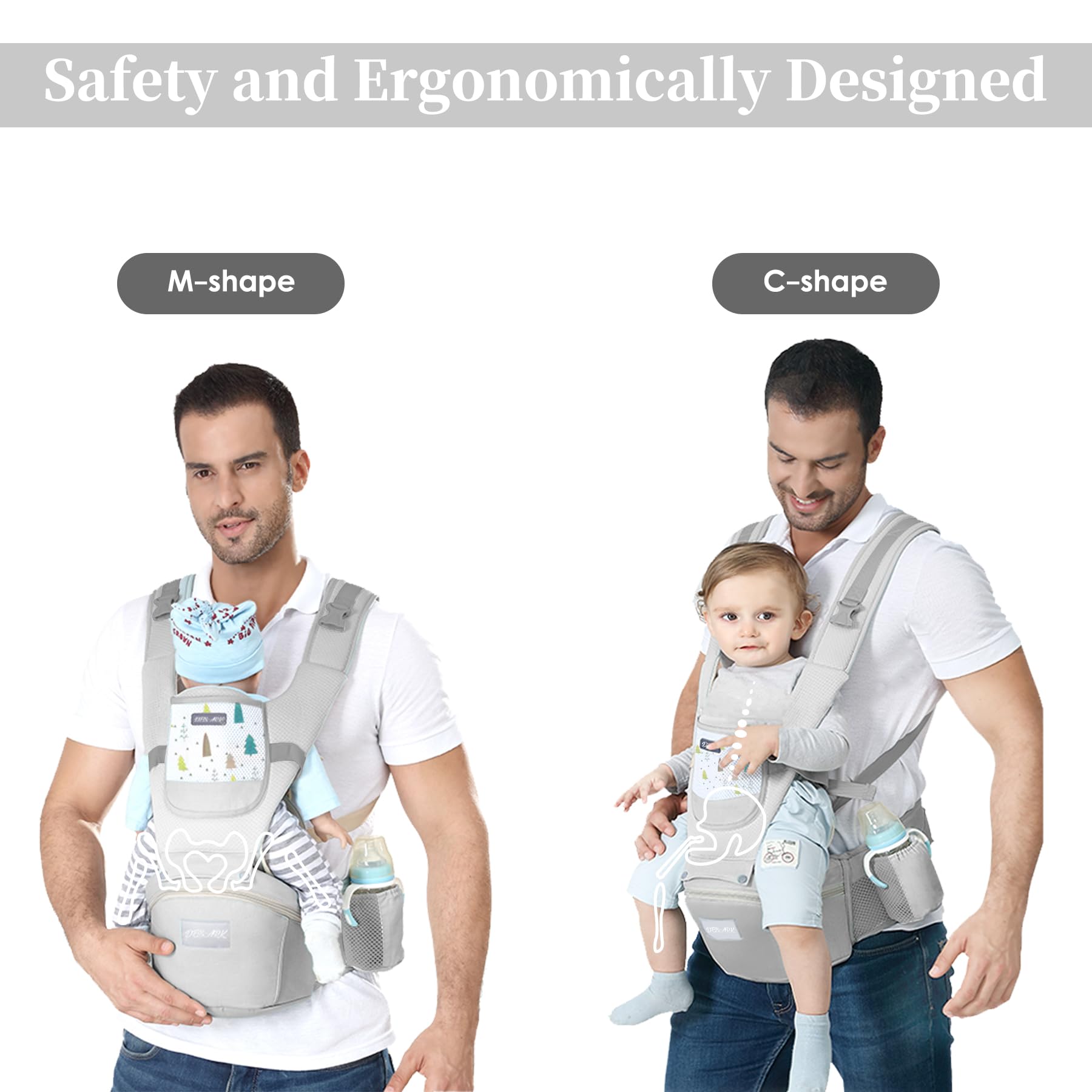 Baby Carrier Newborn to Toddler - Debark Baby Carrier with Hip Seat, 6-in-1 Adjustable Detachable Ergonomic Infant Carrier for Babies from 0-36 Months, Ideal for Baby Travel Essentials (Grey)