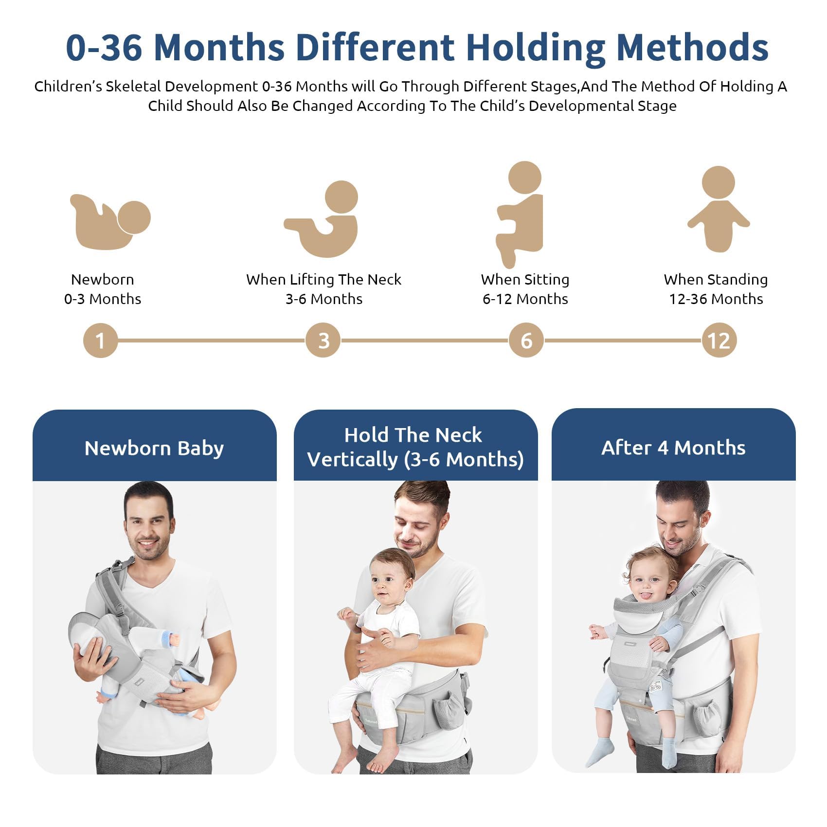 - 【Free Your Hands】Safotad 6-in-1 Baby Carrier is the perfect solution to having your hands full while caring for your child in your busy life or while traveling. It comes with 3 combinations and 6 wearing styles for babies from 0-36 months old. You can use it in different ways depending on your child's growth and your traveling needs. It is perfect for you to carry your child on the go or for daily use! So that you can still stay elegant and comfortable.