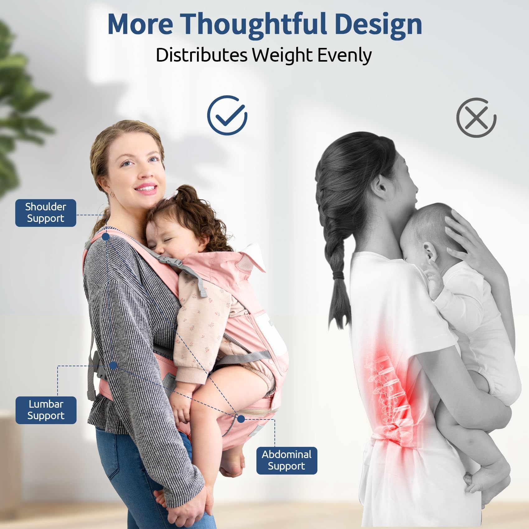 - 【Experience Happy Traveling】It has multiple features of comfort, convenience, and multi-functionality. There are a variety of positions to meet baby's needs. In addition to enjoying hands-free and easy travel, the two sides of the waist and under the waist bench are also set up with a large enough storage space to conveniently store bottles, cell phones, keys, diapers, and other items. So you don't need to travel with a big bag. Don't miss this opportunity for comfort, safety and style!
