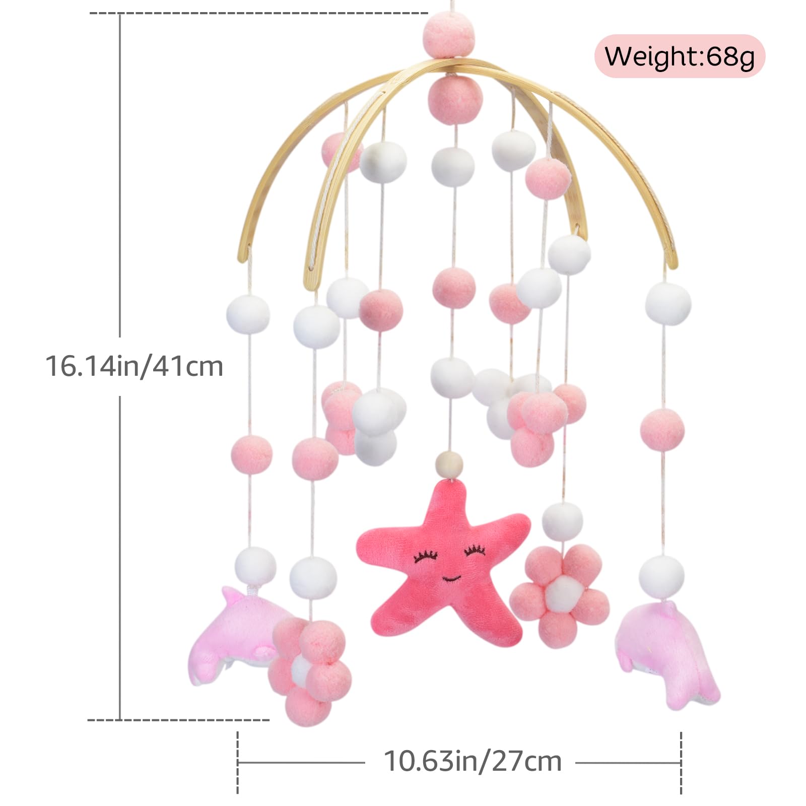 Baby Crib Mobile - Cloud Mobile for Crib, Felt Cloud Nursery, Baby Bassinet Mobile - Shower Set for Infant Bedroom Hanging Decoration (Pink)