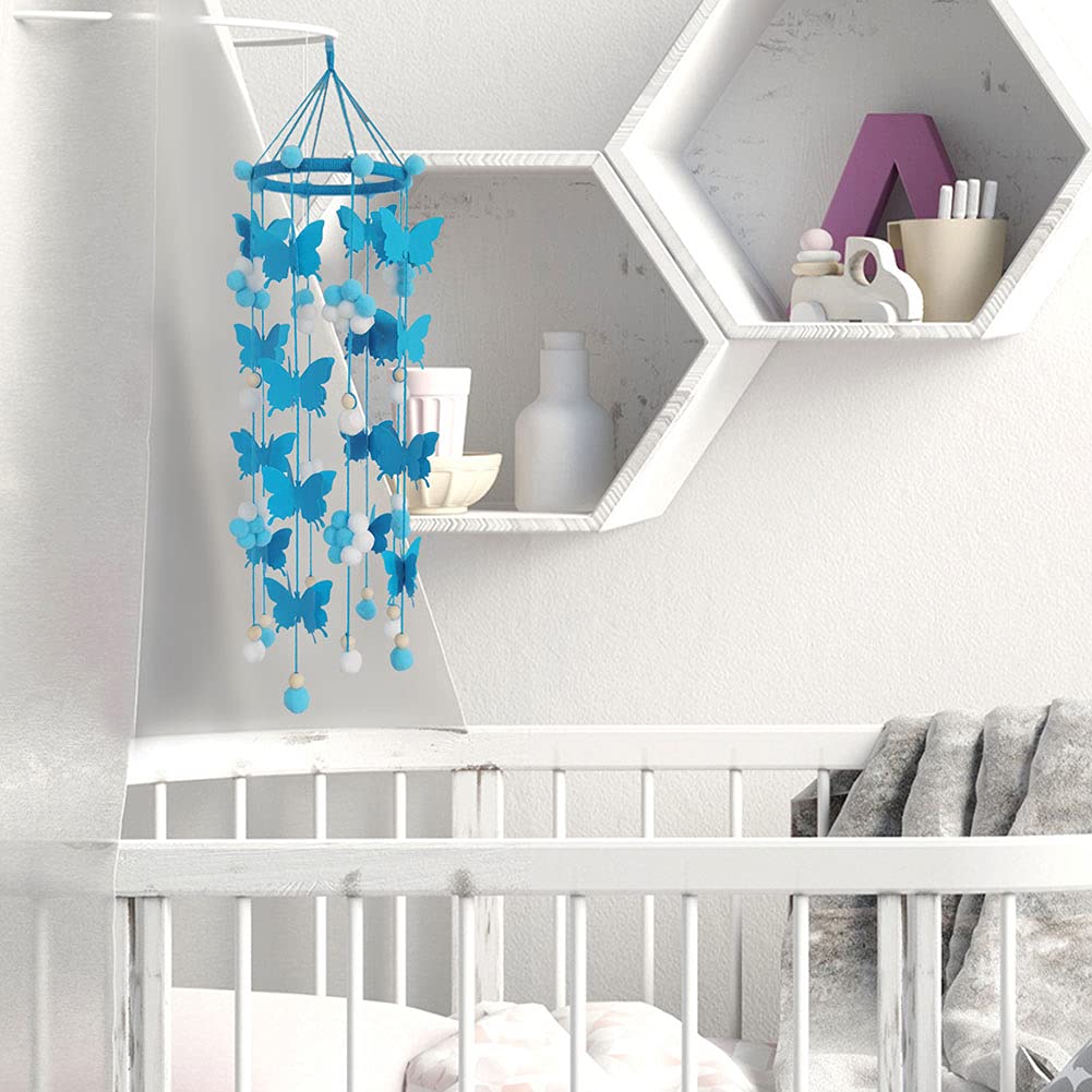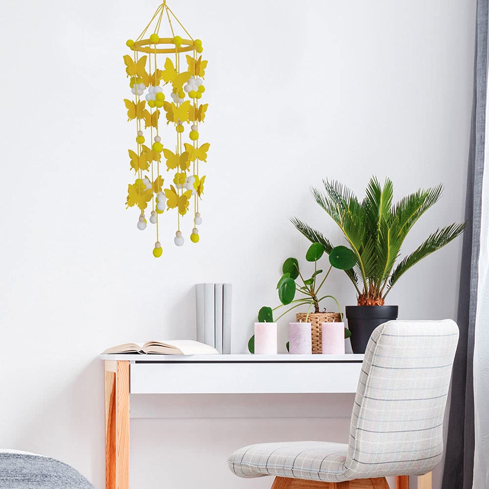- Durable Baby Crib Mobile: The baby wind chimes for girls and boys are made by felt ball and cardboard butterflies. The Nature material is more fit for baby.