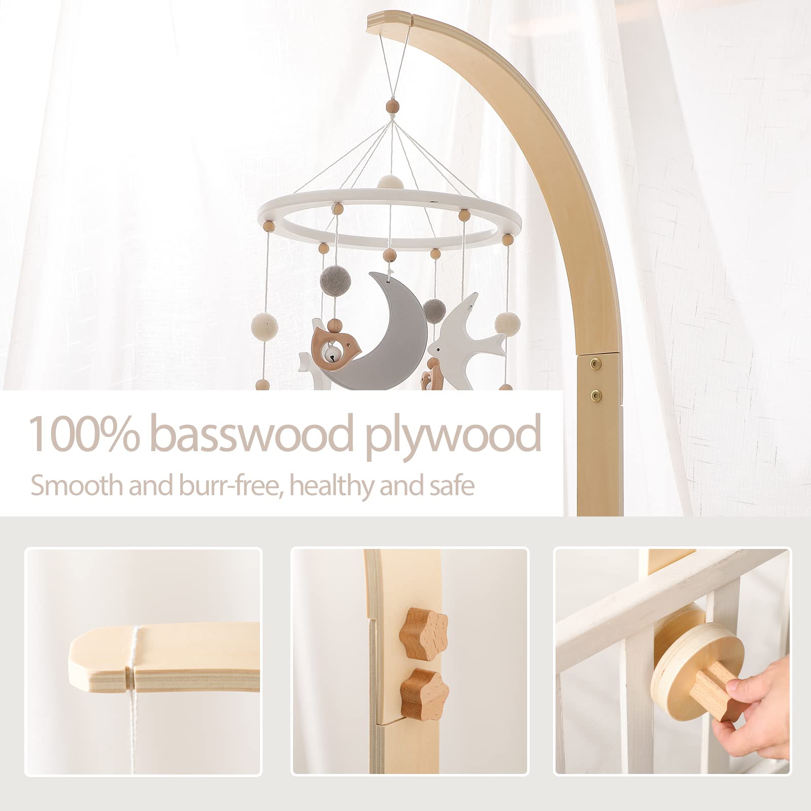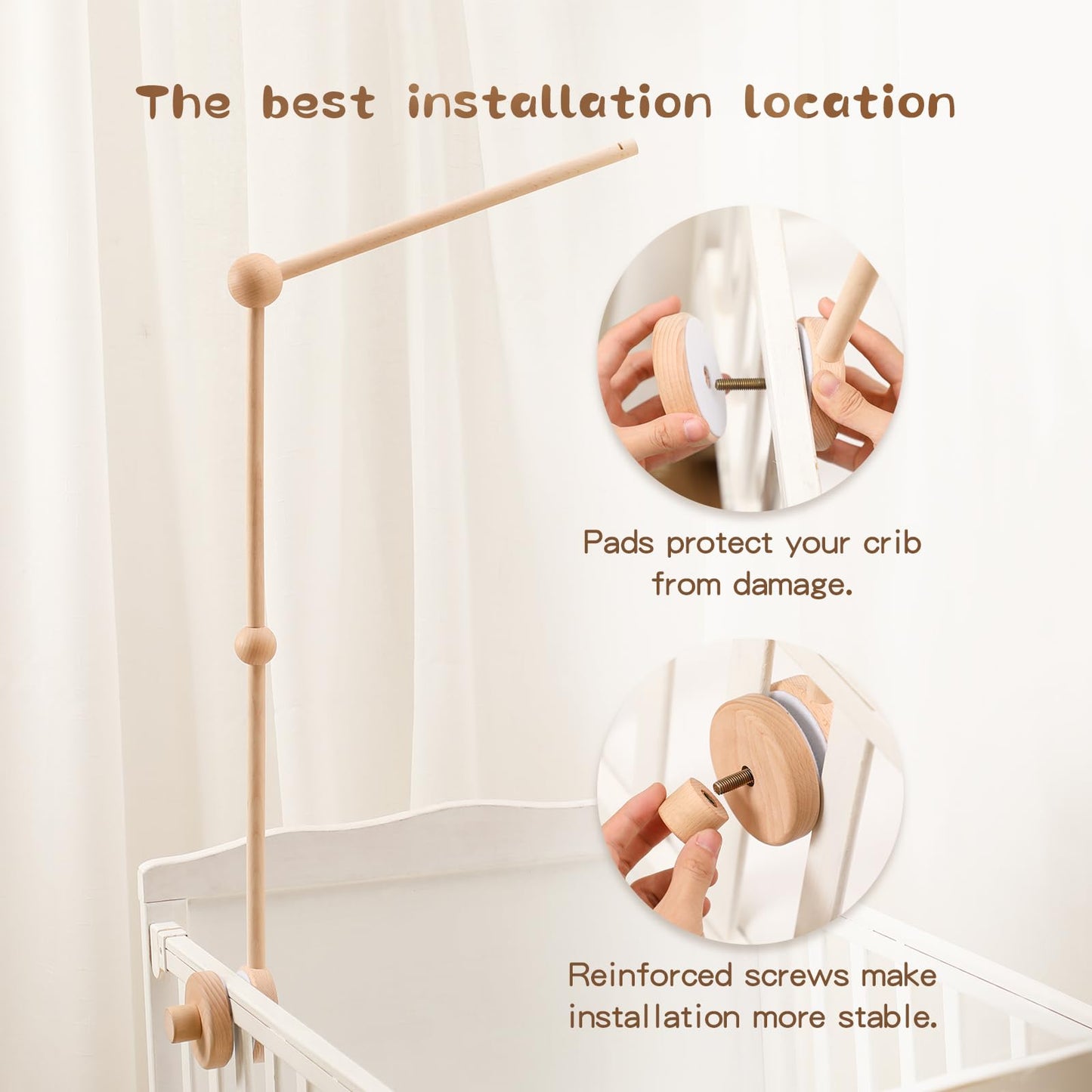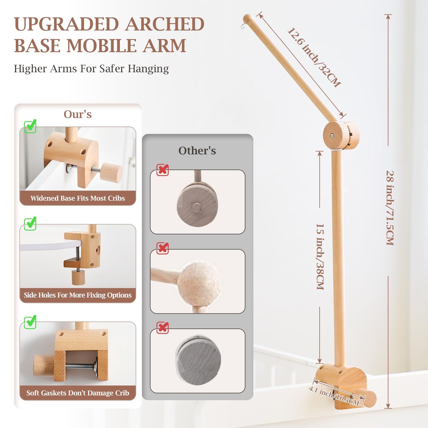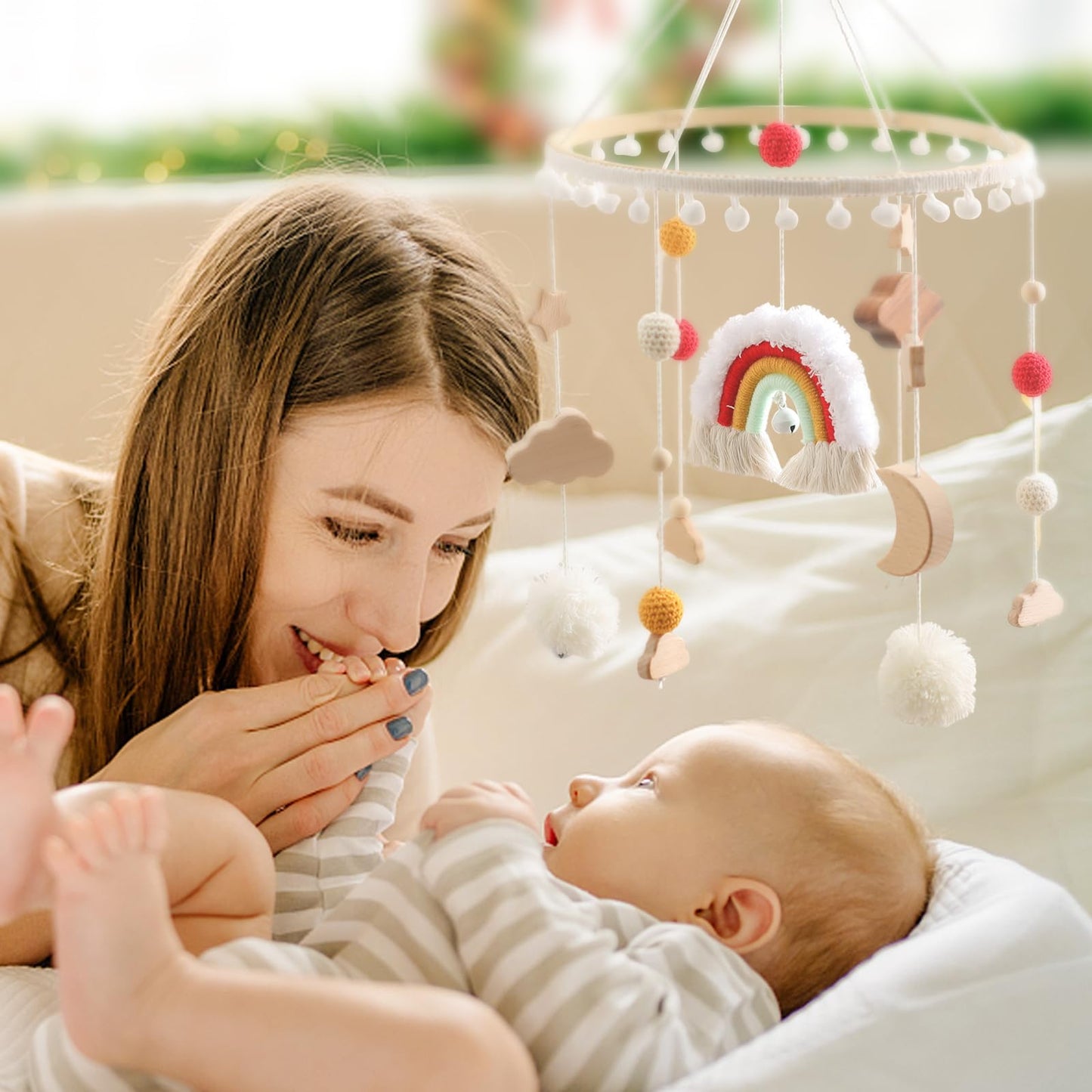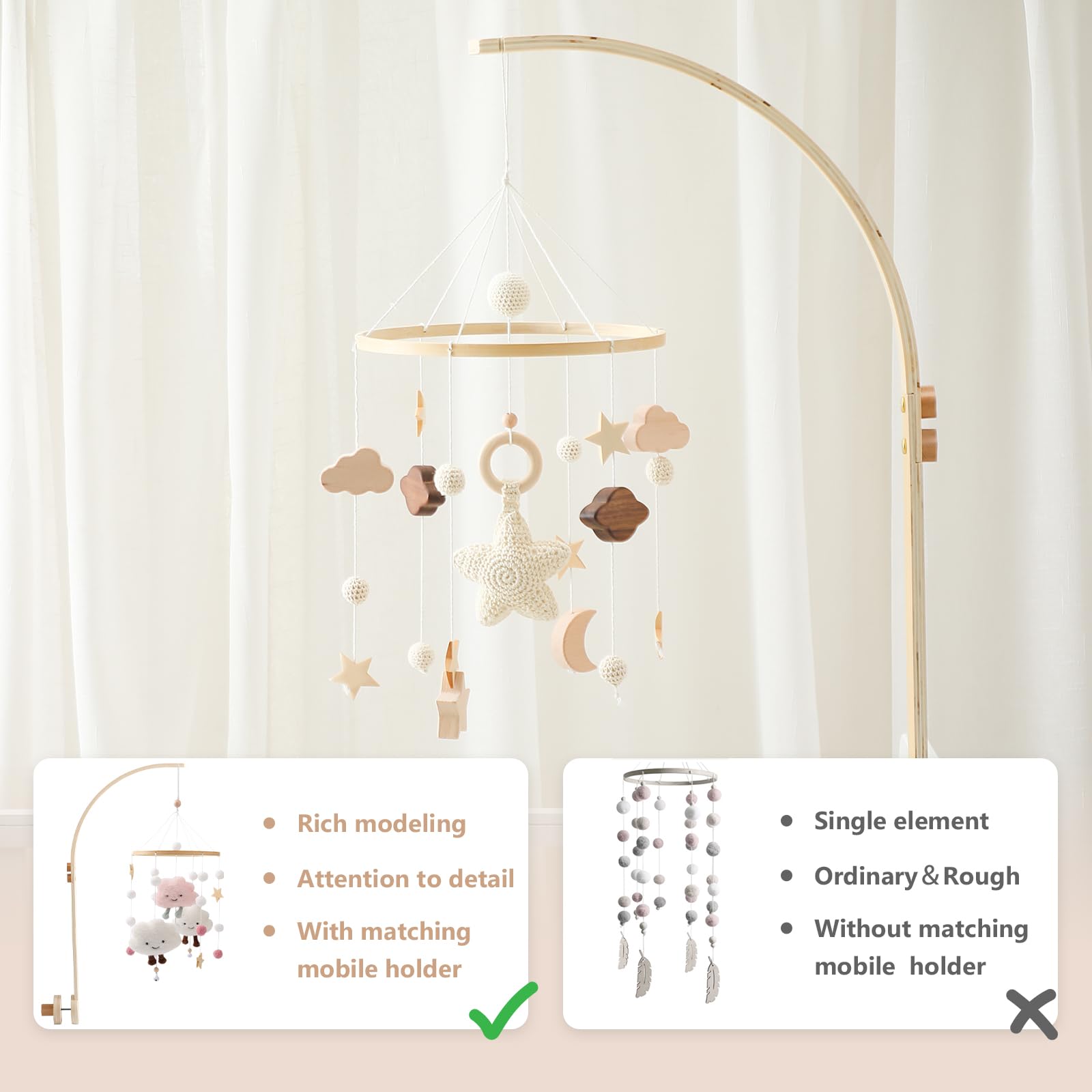 - ✨GENDER NEUTRAL BABY MOBILE - Beautiful baby mobile is in soft and natural colors - white and wood color. Neutral soothing color tones make this crib mobile be suitable for both baby boys and girls. Perfectly match any nursery decor or boho decor for any room of the house.