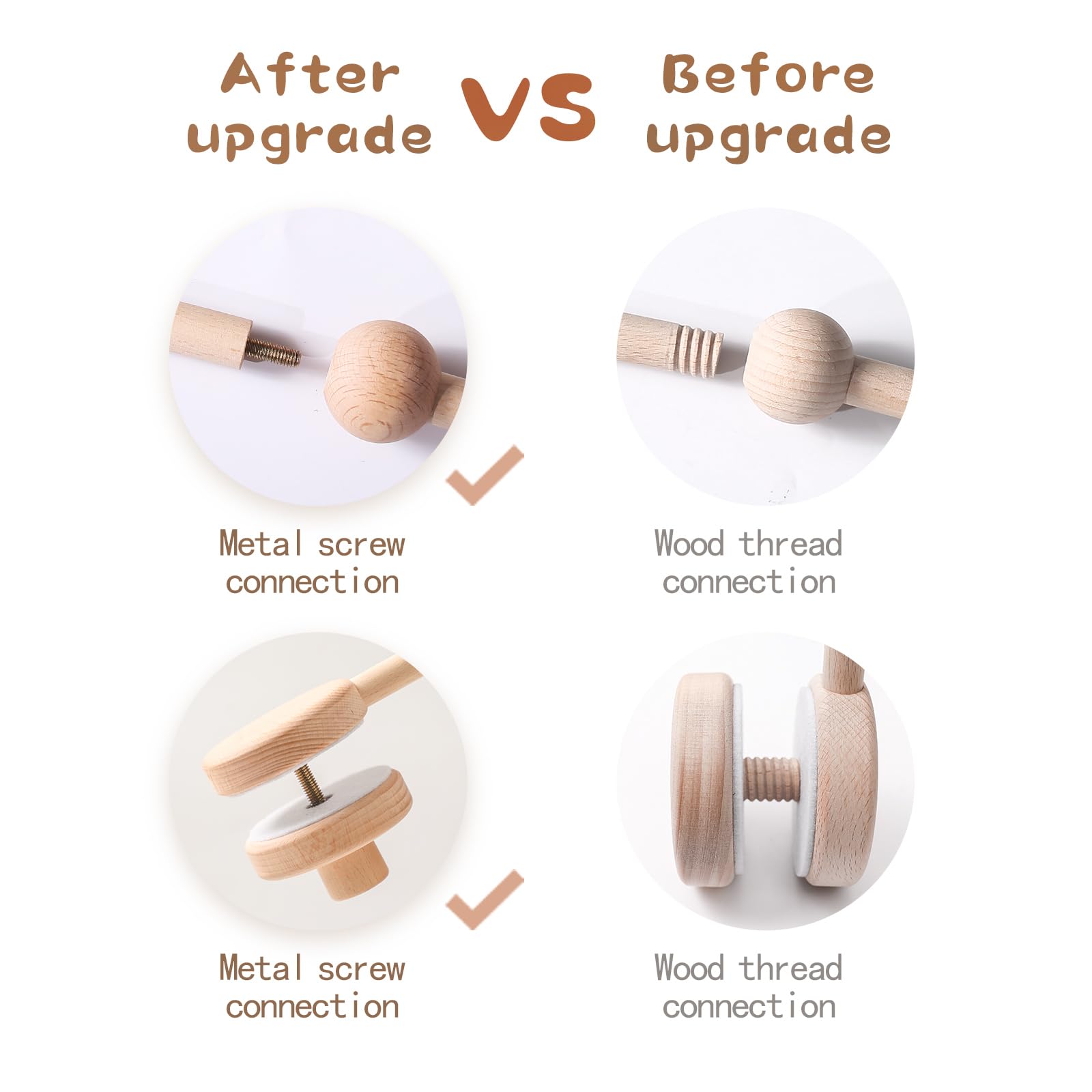 - ✨ NATURAL & HANDCRAFTED - 100% hand-crocheted, unfinished natural bamboo, beech, black walnut, maple. Hand stitched, hand strung with meticulous attention to the details. For better protection, a piece of sandpaper is included, you can sand it according to the smoothness you need. This mobile for your sweet baby measures approx 9 inches in diameter and approx 19 inches in length from the top to the bottom.