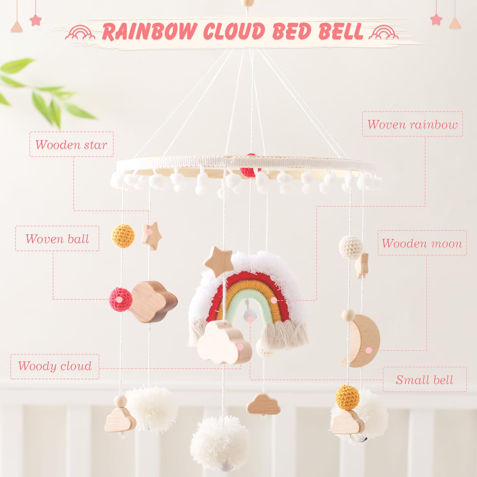 - ✨ PROMOTES HEARING AND VISUAL DEVELOPMENT - Simply Hang the nursery mobile on a baby mobile holder (not included). The natural soothing color provides enough interest & imagination for infants newborns but does not overstimulate. Our baby crib mobile contains bells that will make a pleasant sound when it trembles slightly or when the wind blows. It helps the baby calm down slowly and fall asleep slowly.
