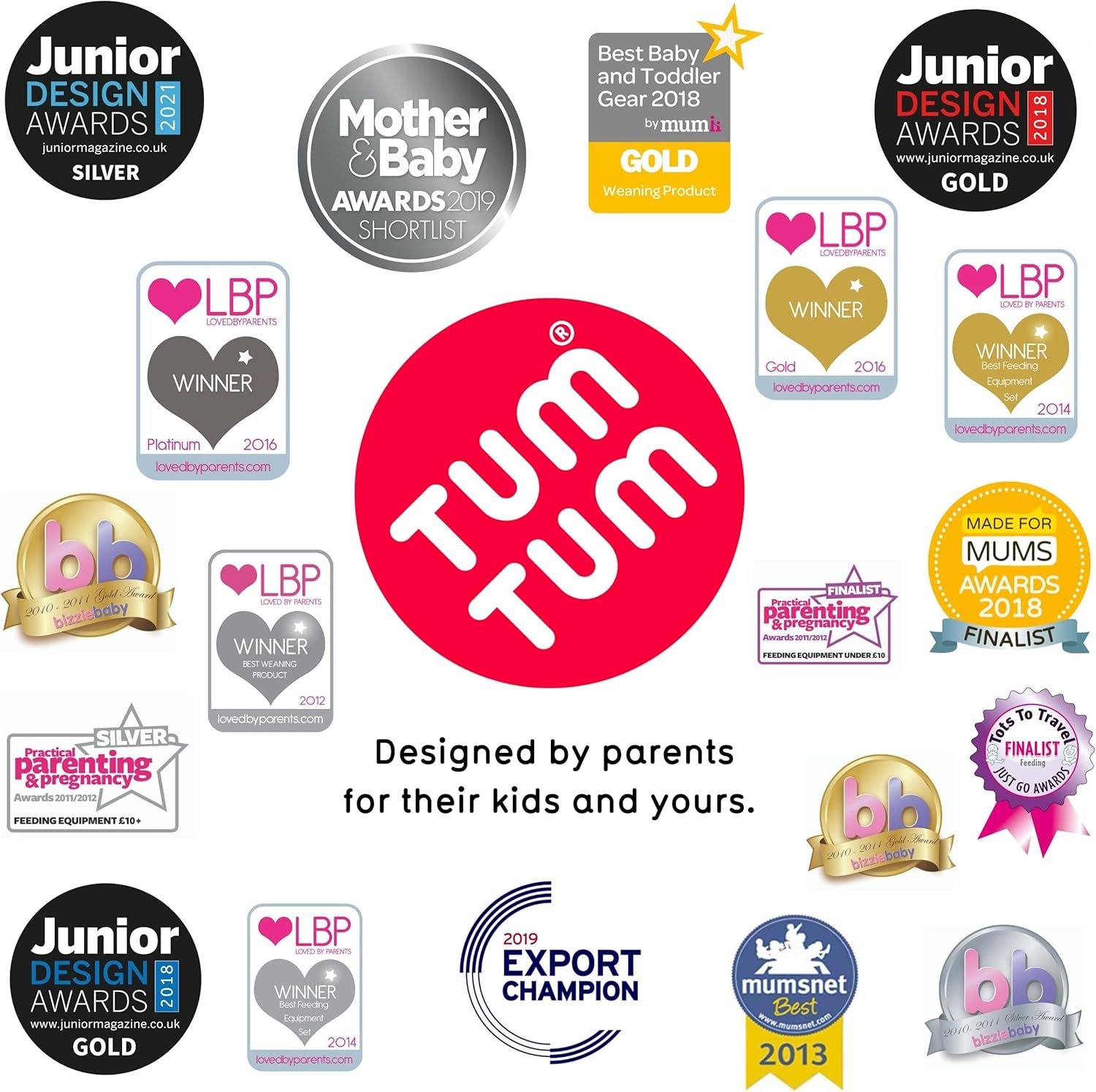 Help little ones with the tricky business of feeding themselves by themselves with our ergonomically designed first cutlery set for baby self feeding, with its easy clean travel case. The bowl shaped fork has a harder nylon tip for effective stabbing and scooping, whereas the spoon has a narrow shallow bowl for scooping and dipping and is made from soft silicone. The rounded ended handles are designed to nestle in the palm when using the first palmar grasp. Super handy for taking out to restaurants and on picnics thanks to the handy travel case, which can be turned inside out to go into the dishwasher. TUM TUM is a family business, based in Buxton in the Peak District. Being parents ourselves, with children who were determined to feed themselves, we have always tried to make mealtimes fun and relaxed. All our childrens cutlery is dishwasher safe and reassuringly BPA & Phthalate free.