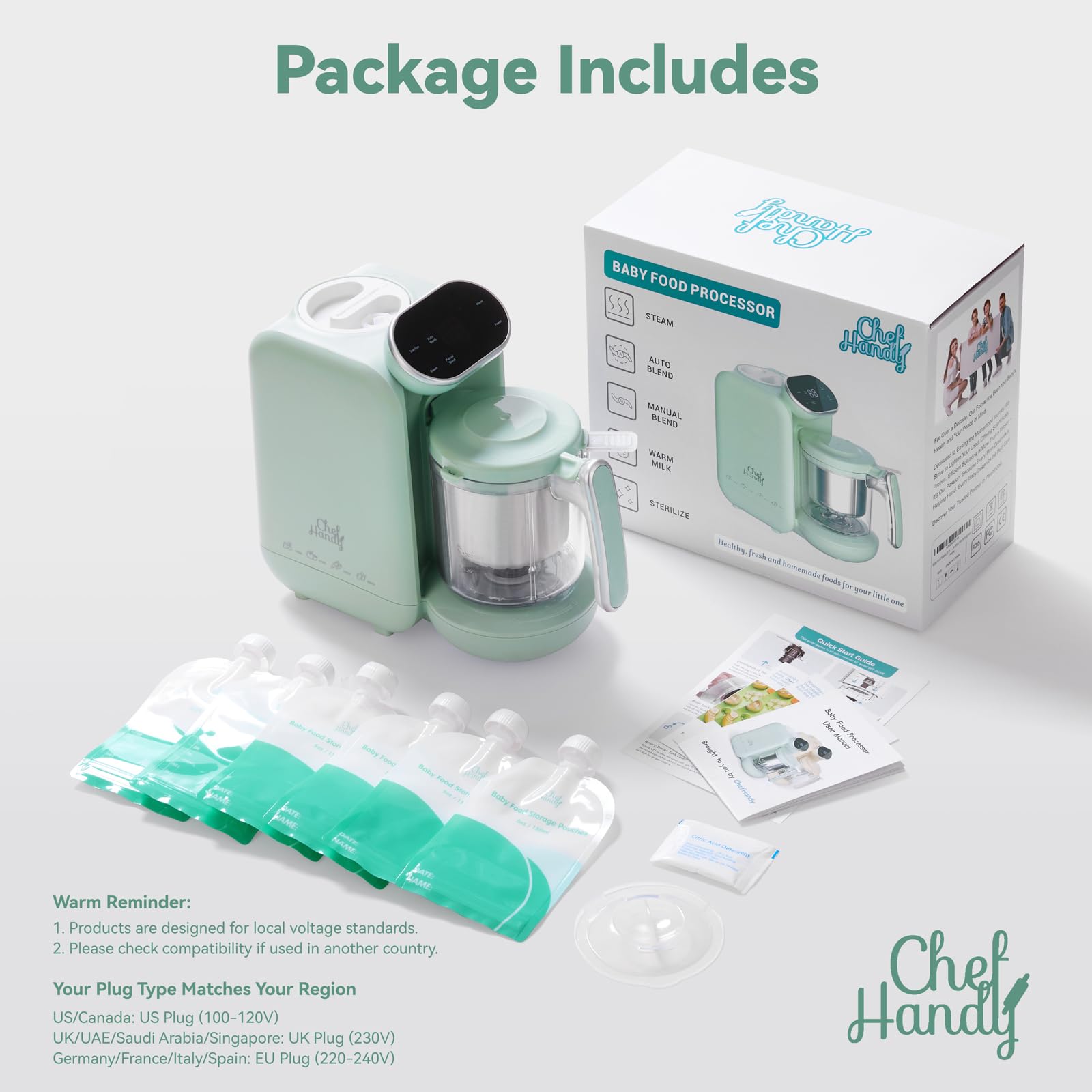 - 【Designed for Convenience with Extra Accessories】This baby food maker with steam and blend includes six baby food pouches and replacement accessories for easy storage and feeding. Built to Last with High-Quality Materials for Long-Term Use.