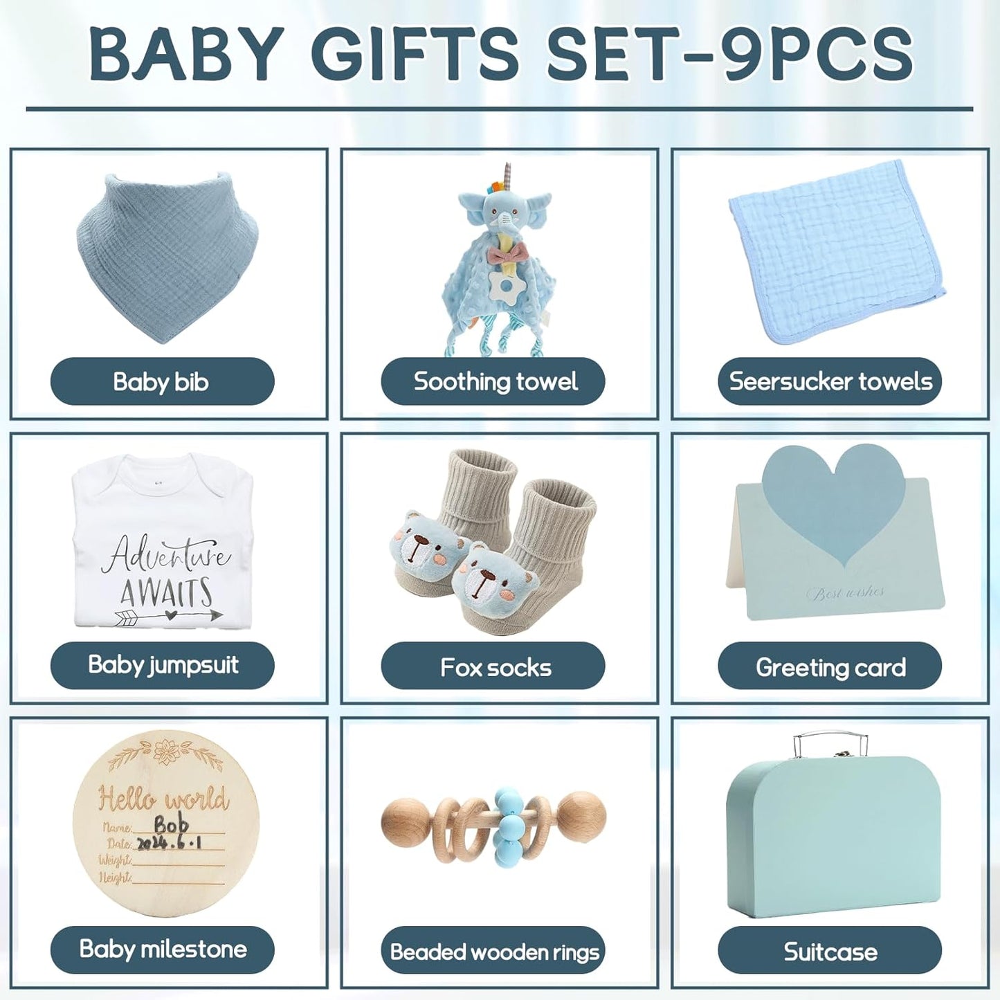 - GREAT VALUE FOR MONEY: Carefully selected newborn essentials. Buying this blue gift box will save you time in choosing gifts or baby products. This newborn gift set is suitable for expectant mothers, fathers, expectant mothers, pregnant families and families preparing for pregnancy to buy and use. This beautiful gift set is also suitable as a gift for new mothers, newborn families, etc.