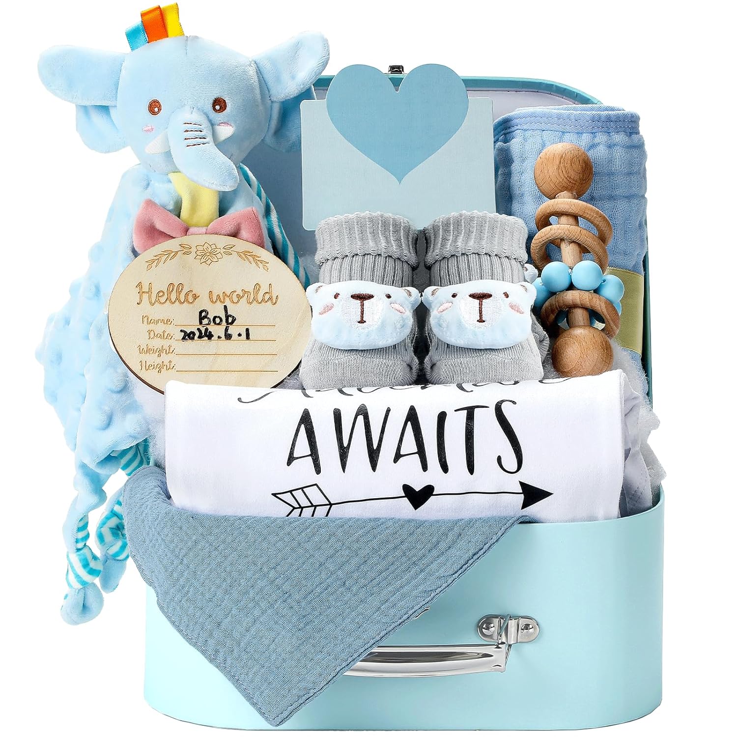 - THOUGHTFUL AND PRACTICAL GIFTS: cute and practical baby gifts. With the matching gift card, you can send your sincere wishes. After removing the gift, our gift box can be used to store small mementos of your baby's growth and will make a great little organizer.