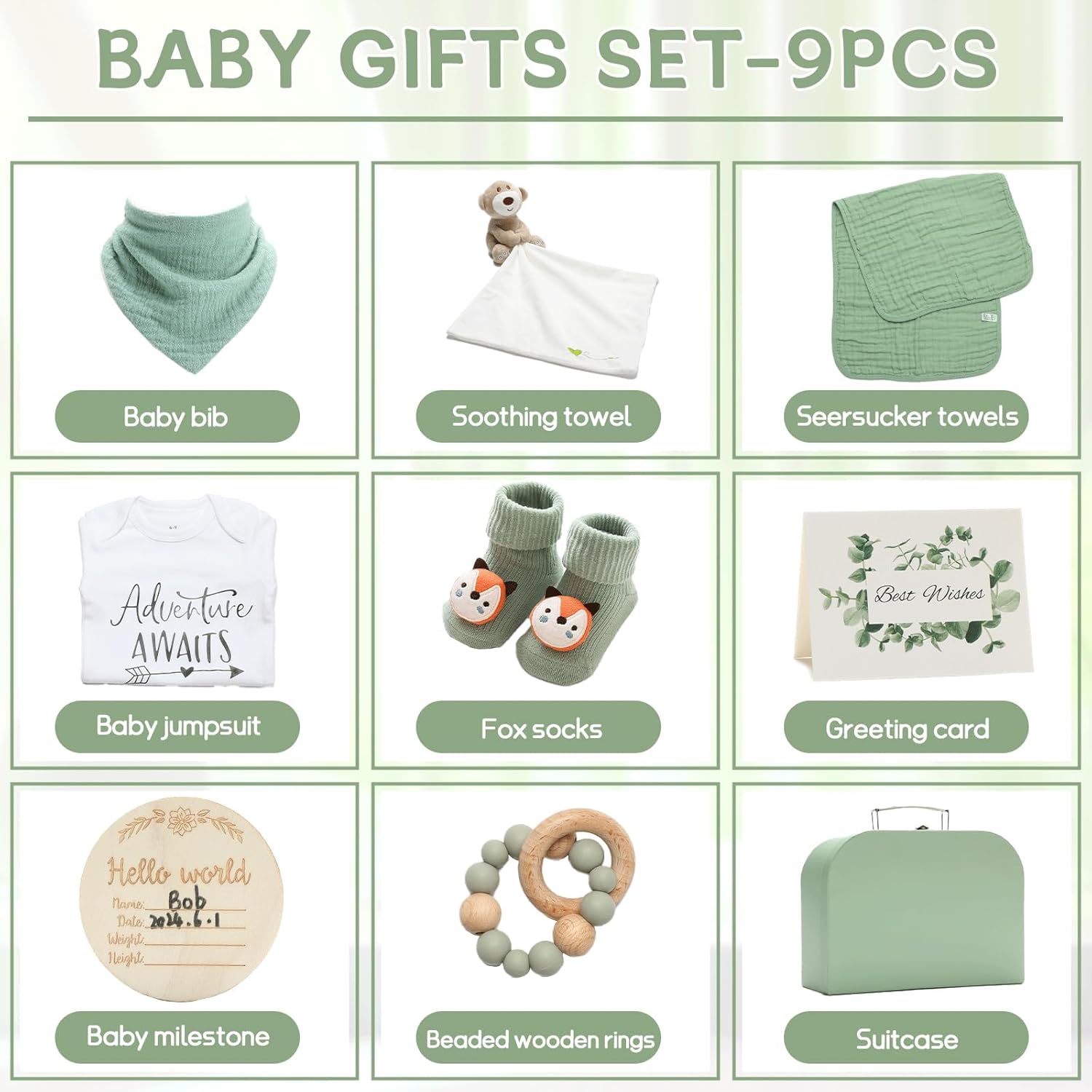 - GREAT VALUE FOR MONEY: Carefully selected newborn essentials. Buying this neutral color gift box will save you time in choosing gifts or baby products. This sage green newborn gift set is suitable for moms, dads, expecting mothers, pregnant families and families preparing for pregnancy. This beautiful gift set is also suitable as a gift for new mothers, newborn families, etc.