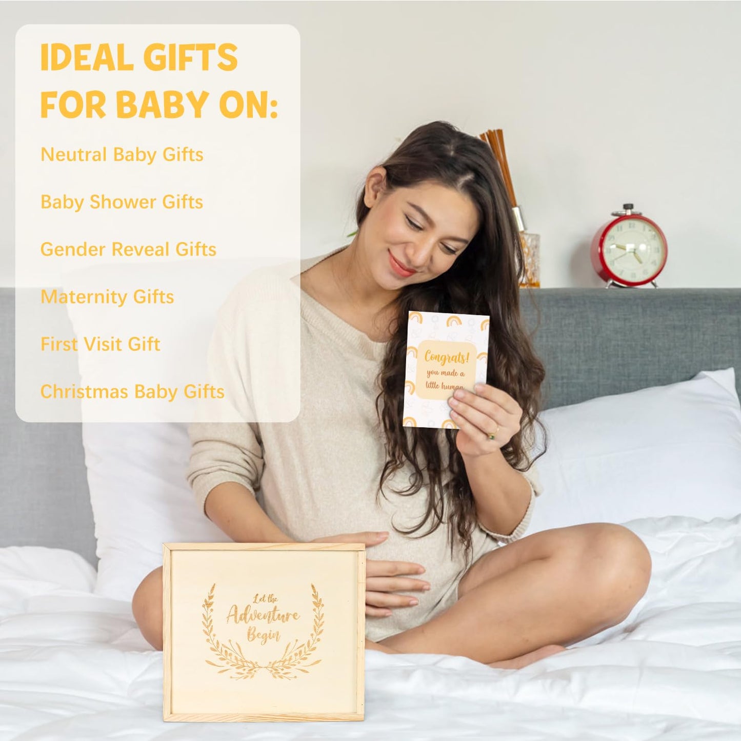 - 【BABY GIFTS FOR MANY OCCASIONS】Order this wonderful neutral baby gifts for a best friend’s baby shower party, gender reveal, new baby's first christmas basket, first time visit. Imagine yourself or your friend receiving this carefully arranged baby gift box filled with love and care and can be sure she will absolutely love the gifts! Click 'Add to Cart' now and support your new parent friends as they welcome their newborn into the world