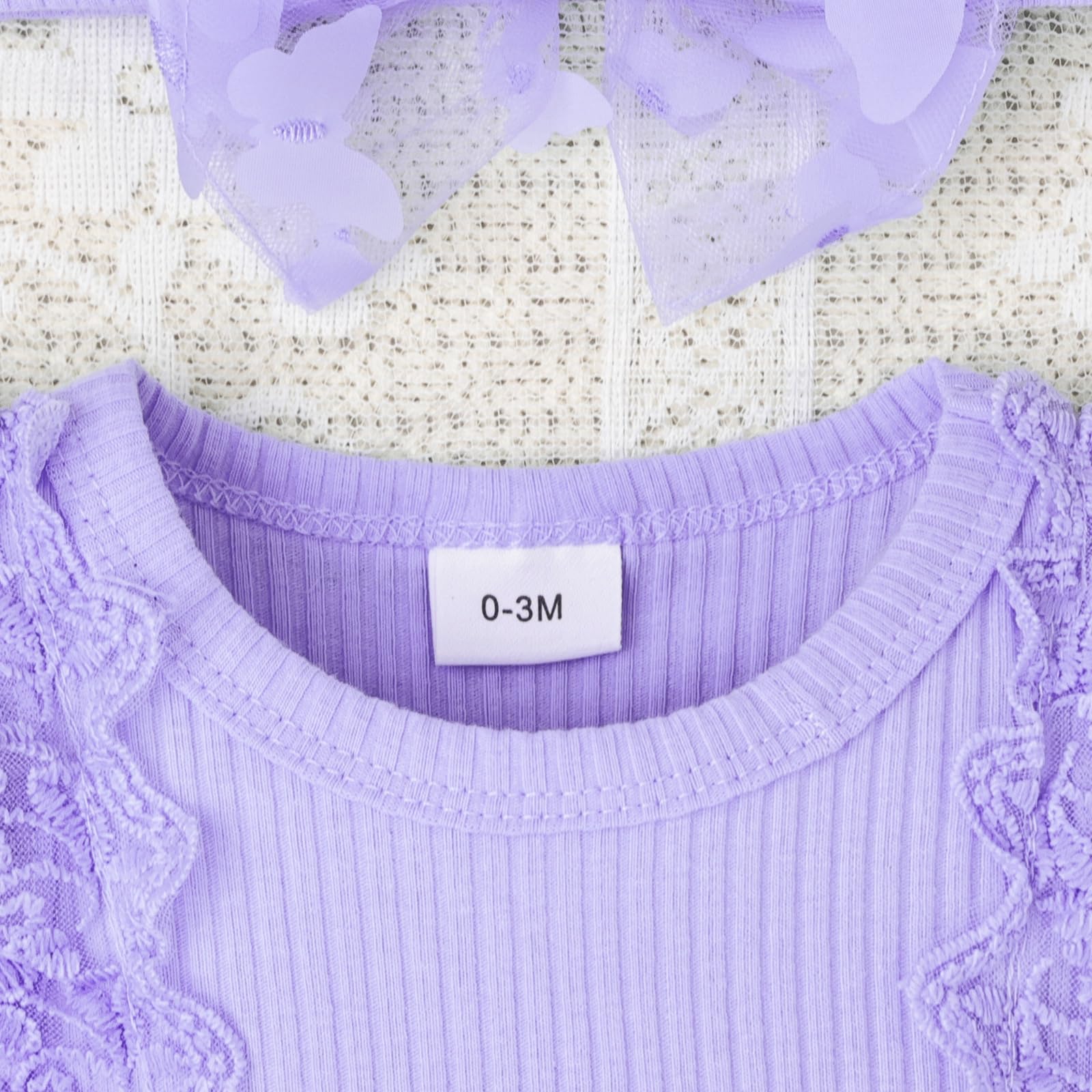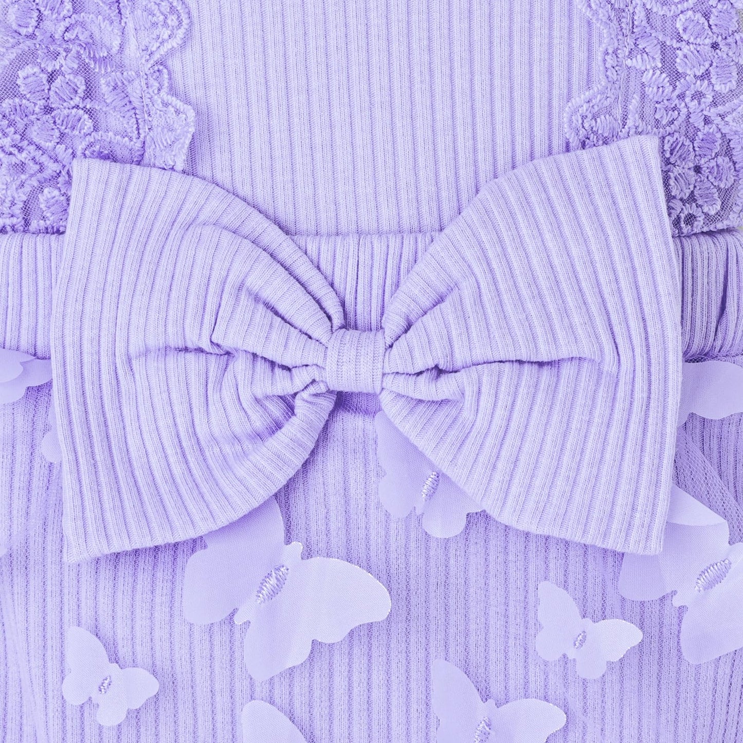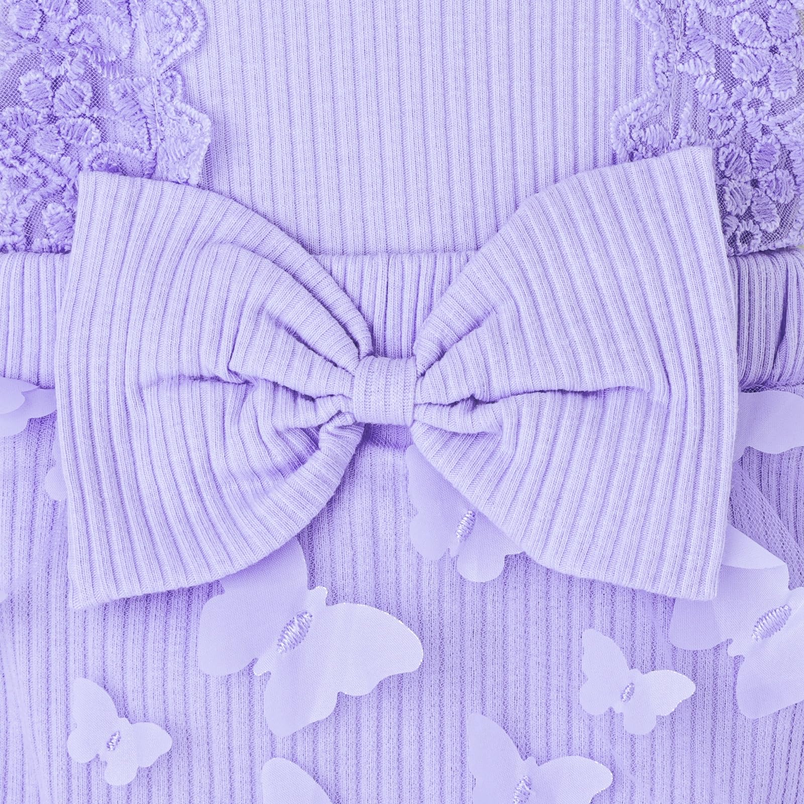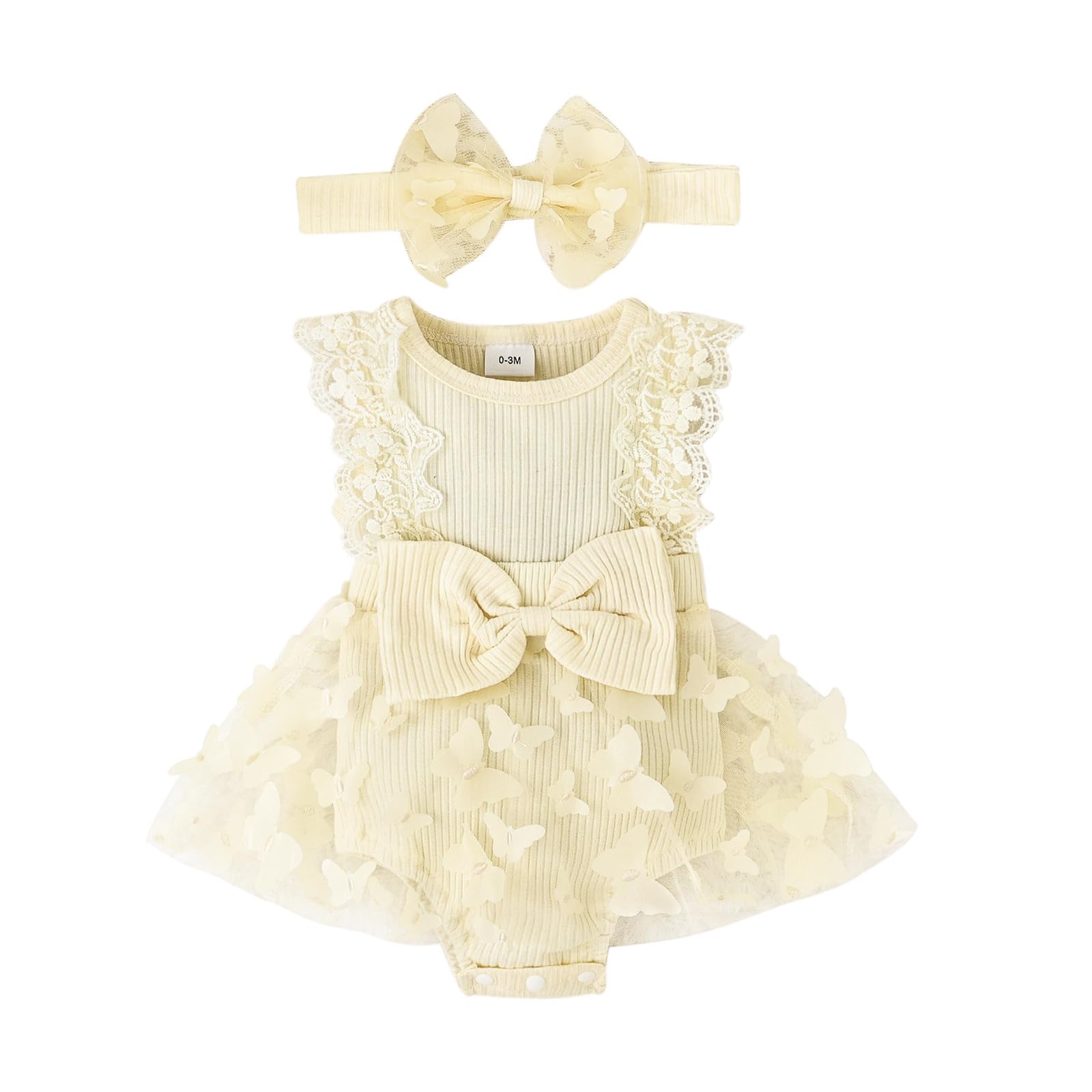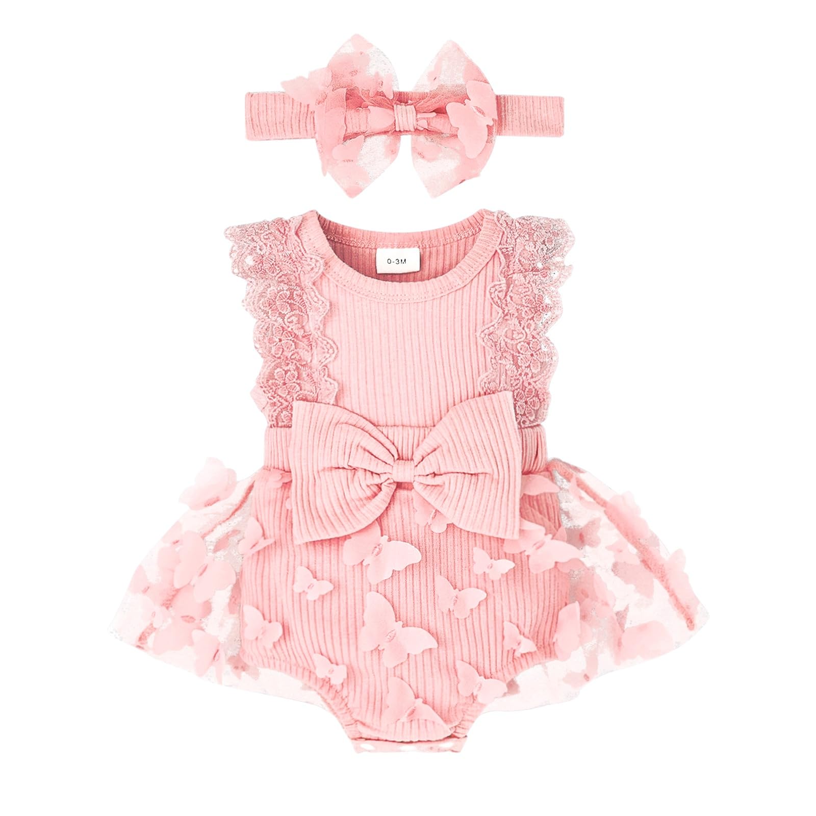 - Unique Design: The baby clothes for girls features delicate lace trim and a large bow at the waist enhances the designthat adds a touch of elegance.Additionally, it is adorned with playful 3D butterfly decorations t,making it eye-catching and stylish. Designed with practicality in mind, the baby girls' clothing includes discreet snap buttons that make dressing and diaper changes quick and hassle-free.